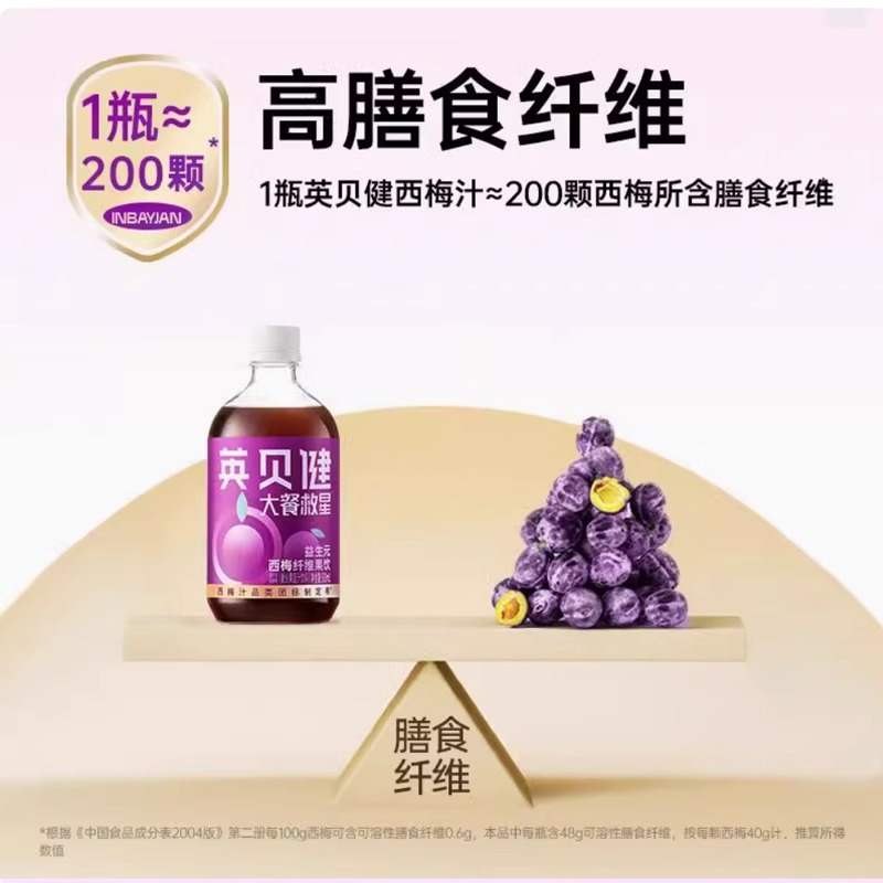 英贝健西梅汁益生元 排便纤维果饮大餐日记救星浓缩饮料英贝健果汁