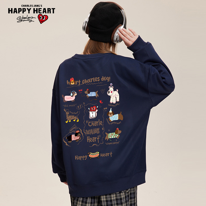 打底情侣款 查尔斯桃心 百搭长袖 小狗印花圆领卫衣男女春秋季 美式