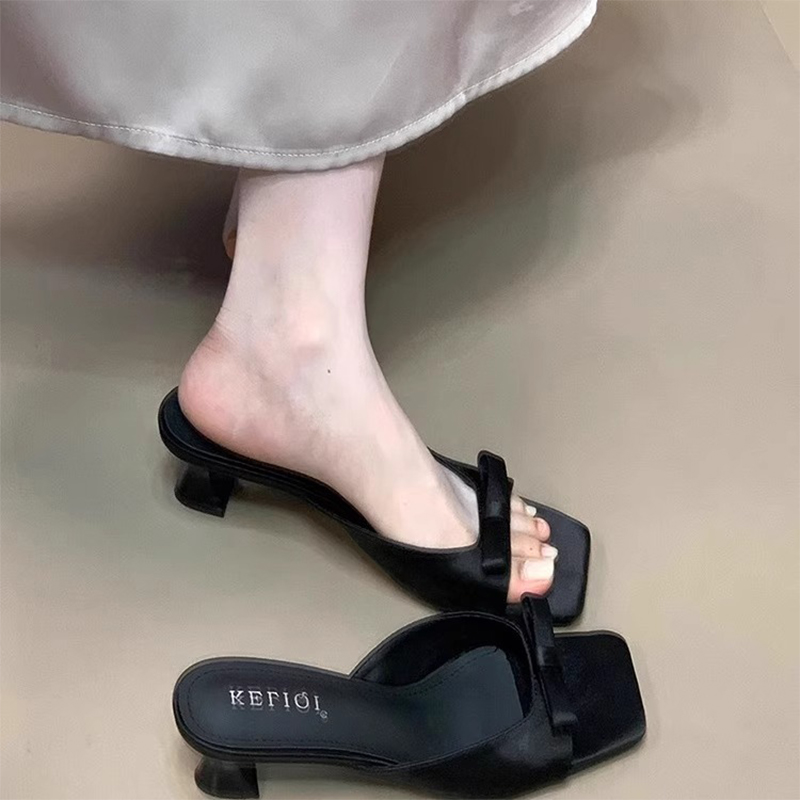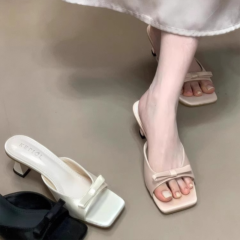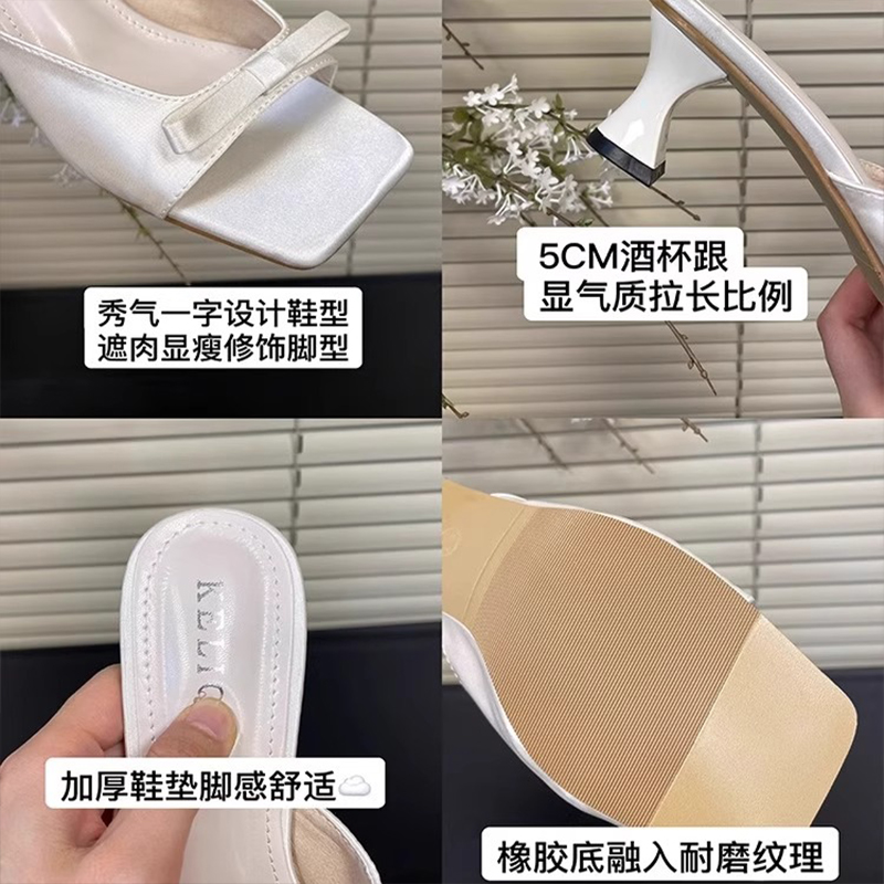 蝴蝶结凉鞋 露趾缎面温柔粗跟一字凉拖鞋 法式 新款 女外穿2025夏季