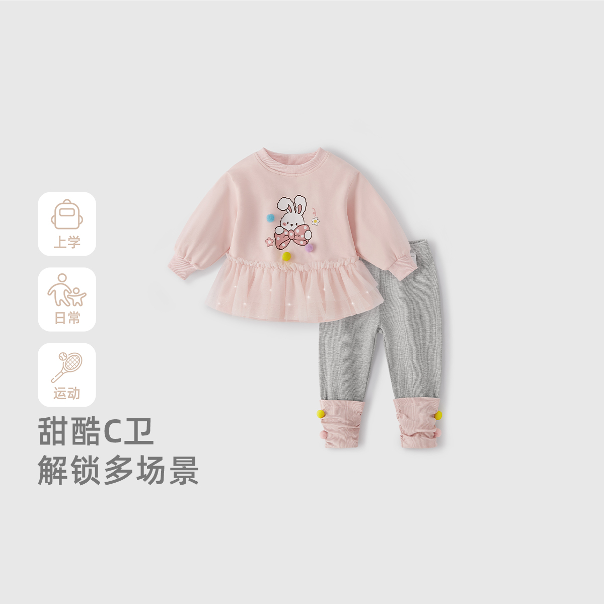女小童秋装 宝宝卫衣打底裤 女童秋套装 儿童洋气时髦两件套 7A抗菌