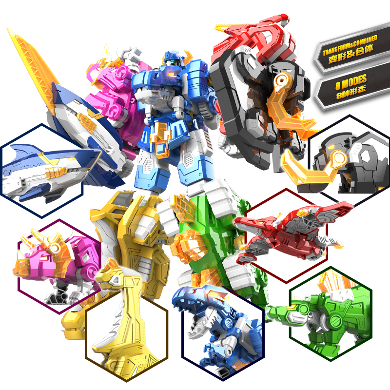 五炫战龙王迷你特工队超级恐龙七合体变形机器人玩具儿童男孩金刚