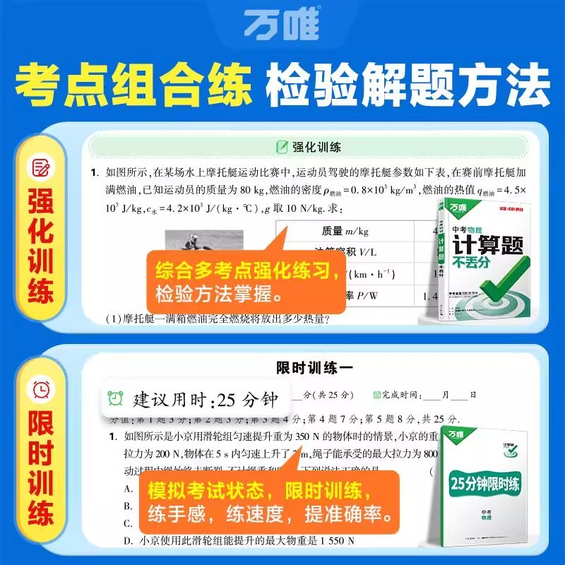 2026适用万唯中考物理计算题不丢分初中七八九年级高频考点清单考法分层专项训练必刷题初一二三解答题技巧练习册中考总复习必刷卷