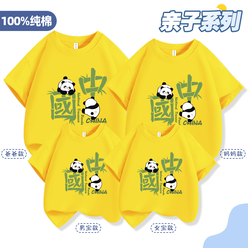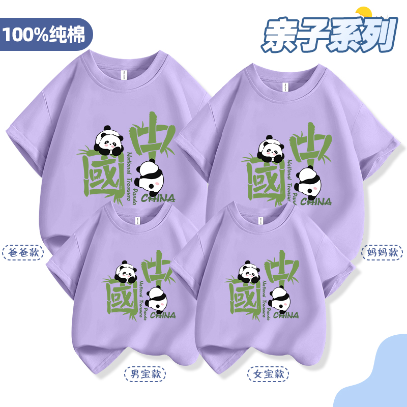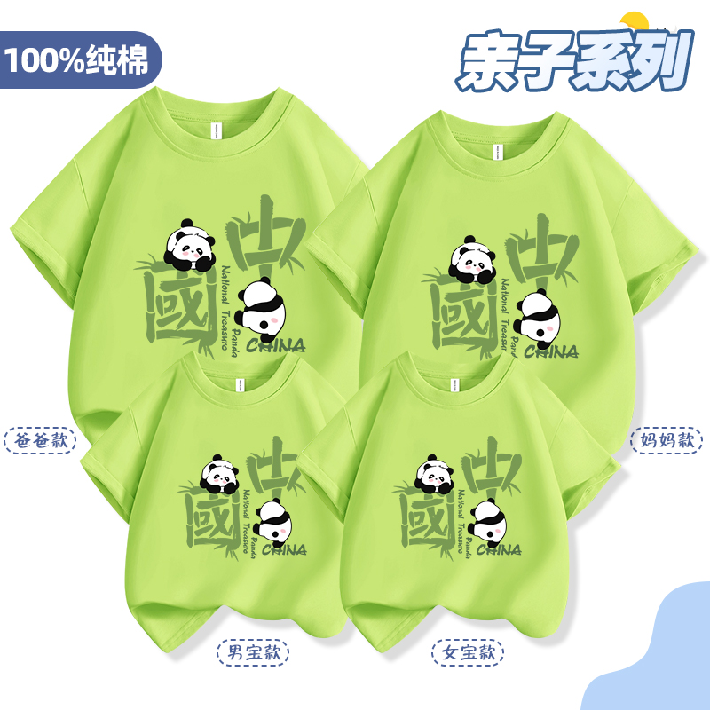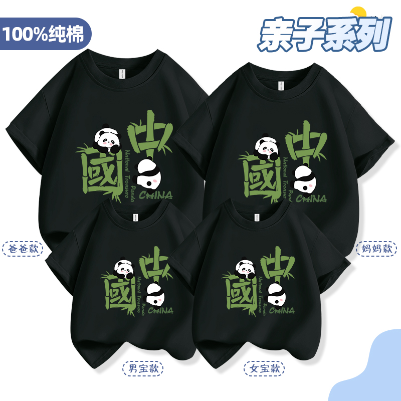 t恤儿童装 可爱熊猫亲子装 一家三口四口全家装 母子母女装 纯棉短袖