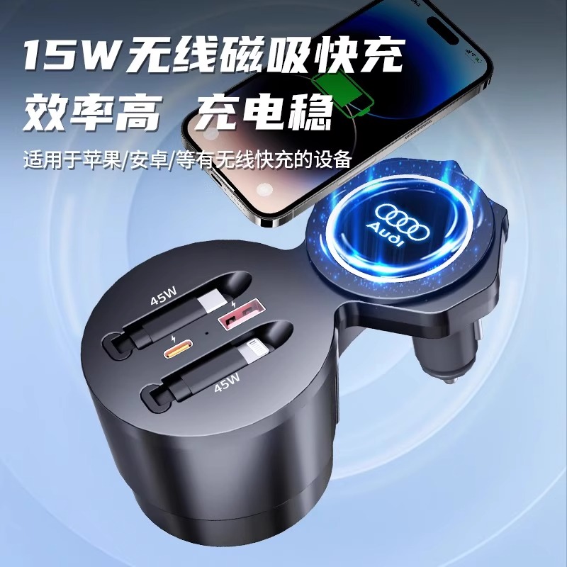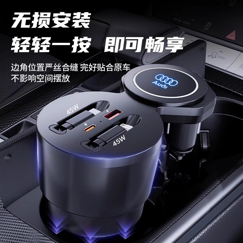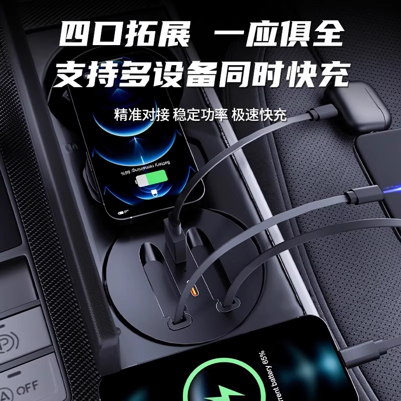 隐藏车载充电器66W 120W超级快充汽车点烟器转换插头一拖三PD快充
