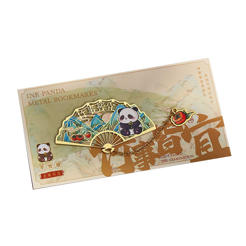 成都熊猫文创金属书签可定制中国风古风扇形镂空创意书签礼盒高颜值高档精美奖励学生送老师伴手礼实用小礼品