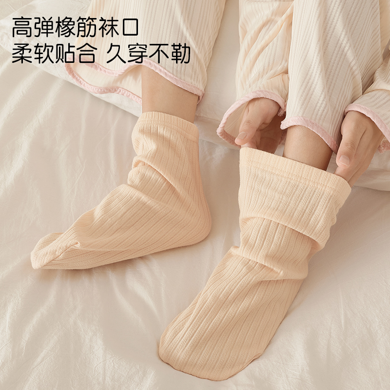 棉伙棉伴海藻袜舒适抗菌防臭男女商务运动纯色裸感中筒袜