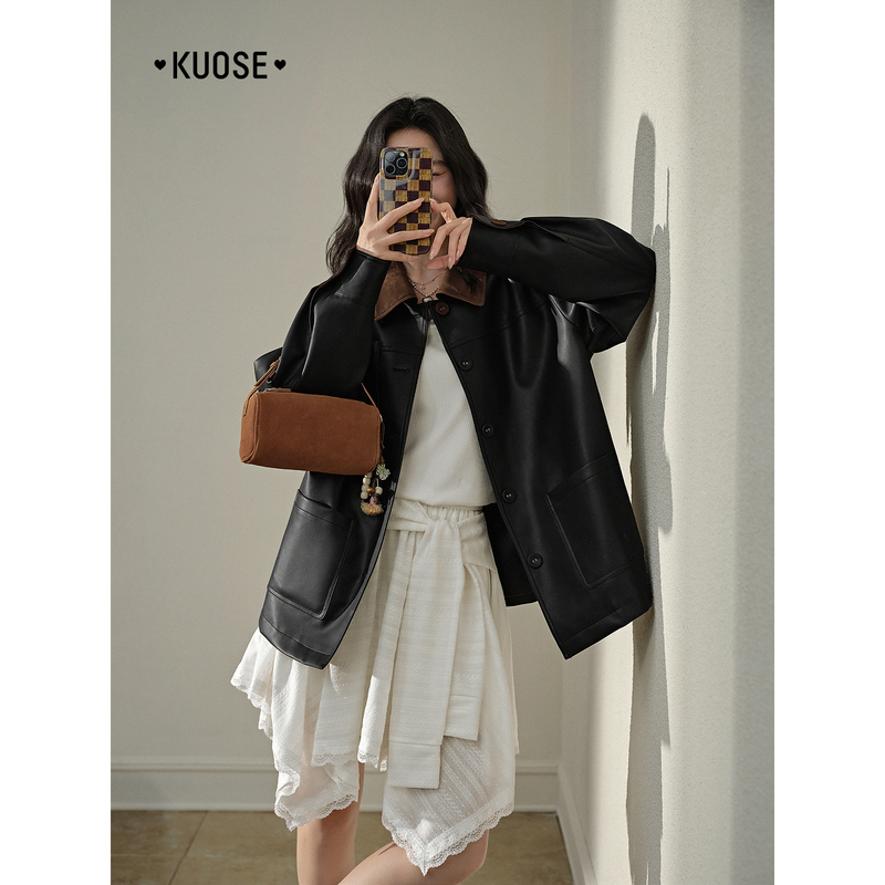 DIMC女装 miu系洗水褪色波点半身裙复古松弛感棕色波点长裙
