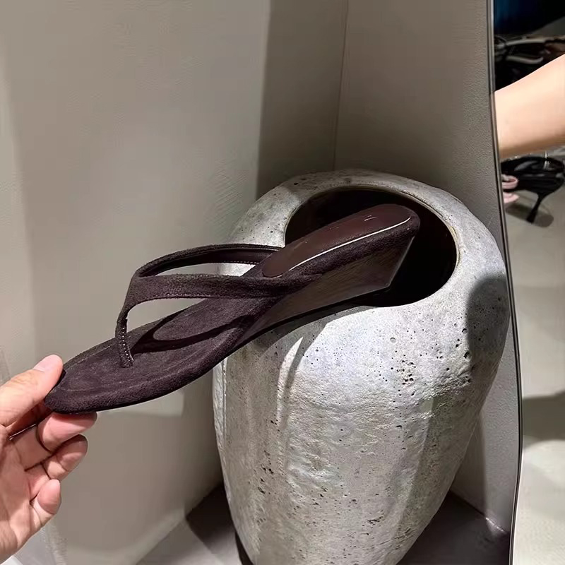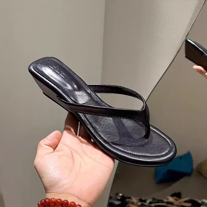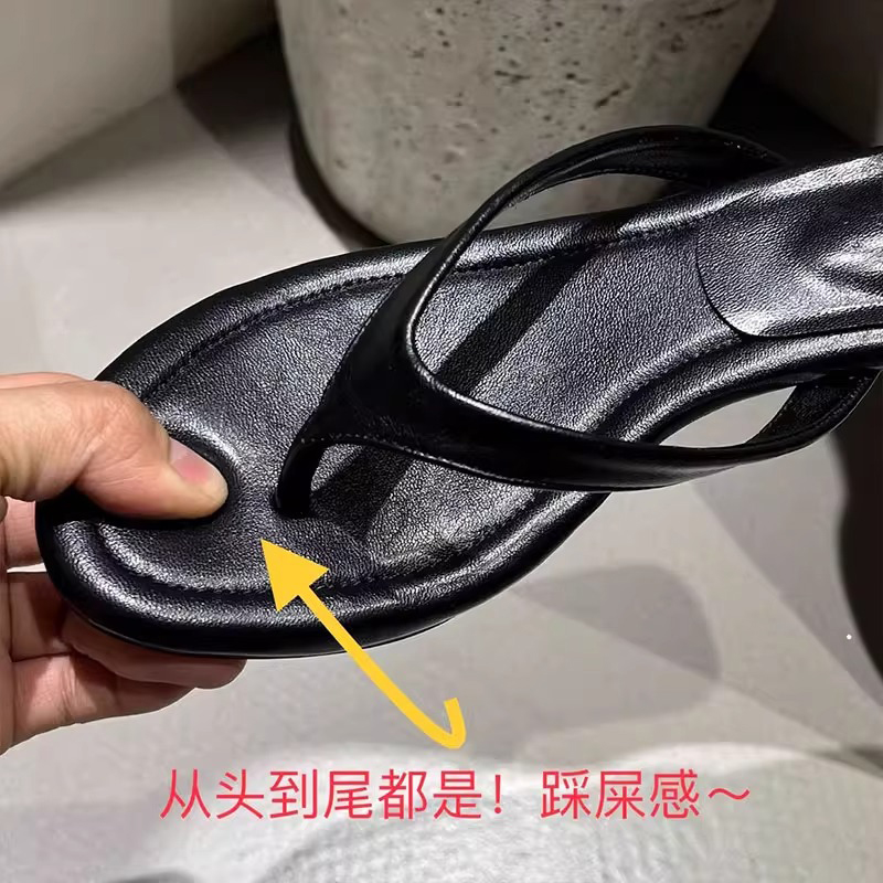 夹趾高跟拖百搭时髦圆头坡跟人字拖女潮 新款 踩屎感拖鞋 ~2025夏季