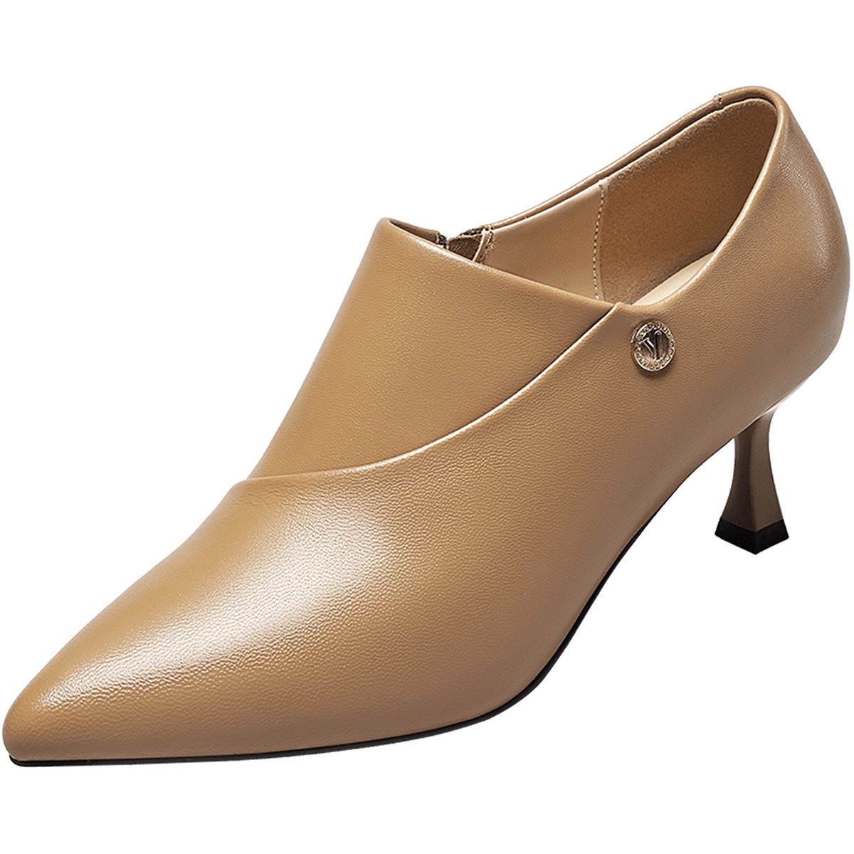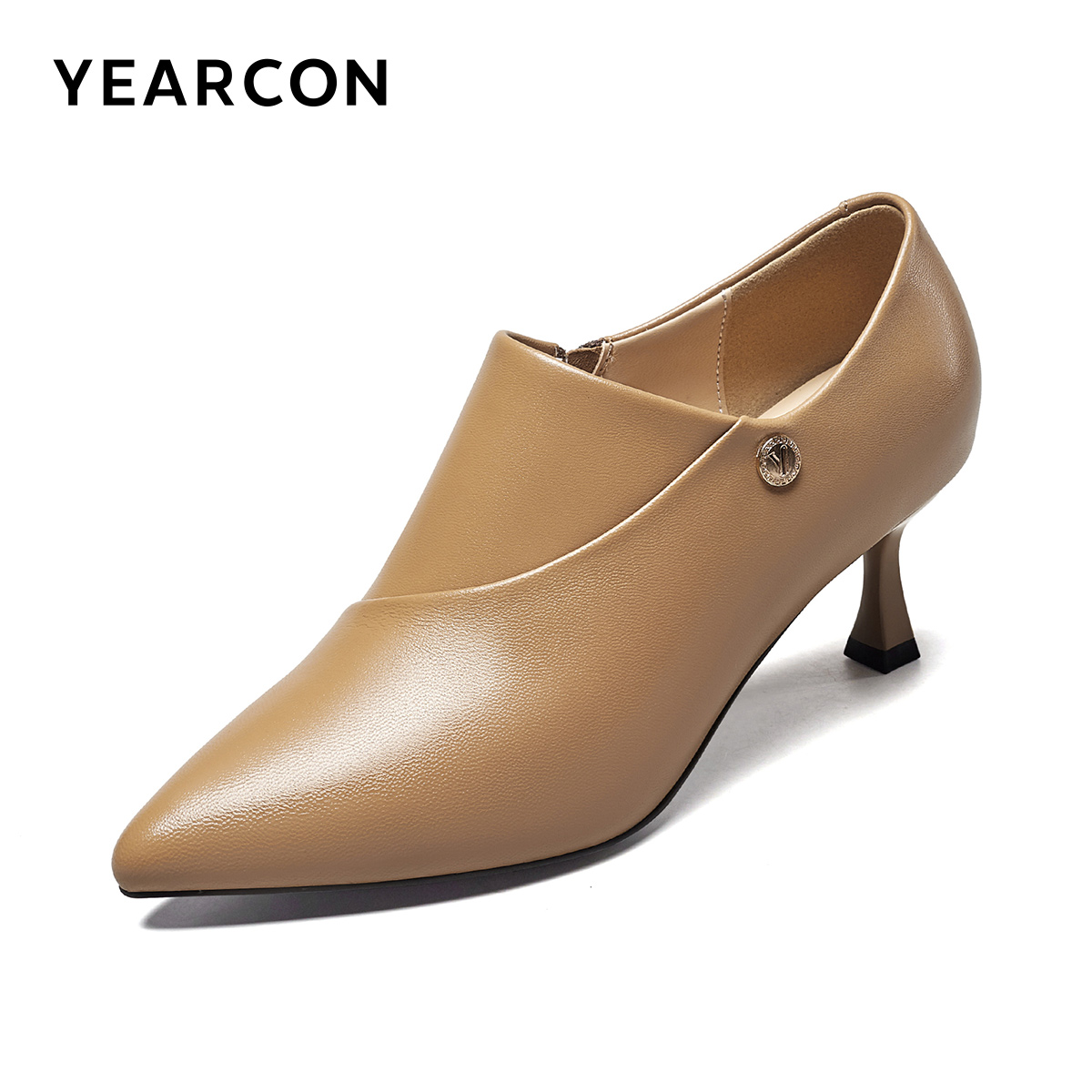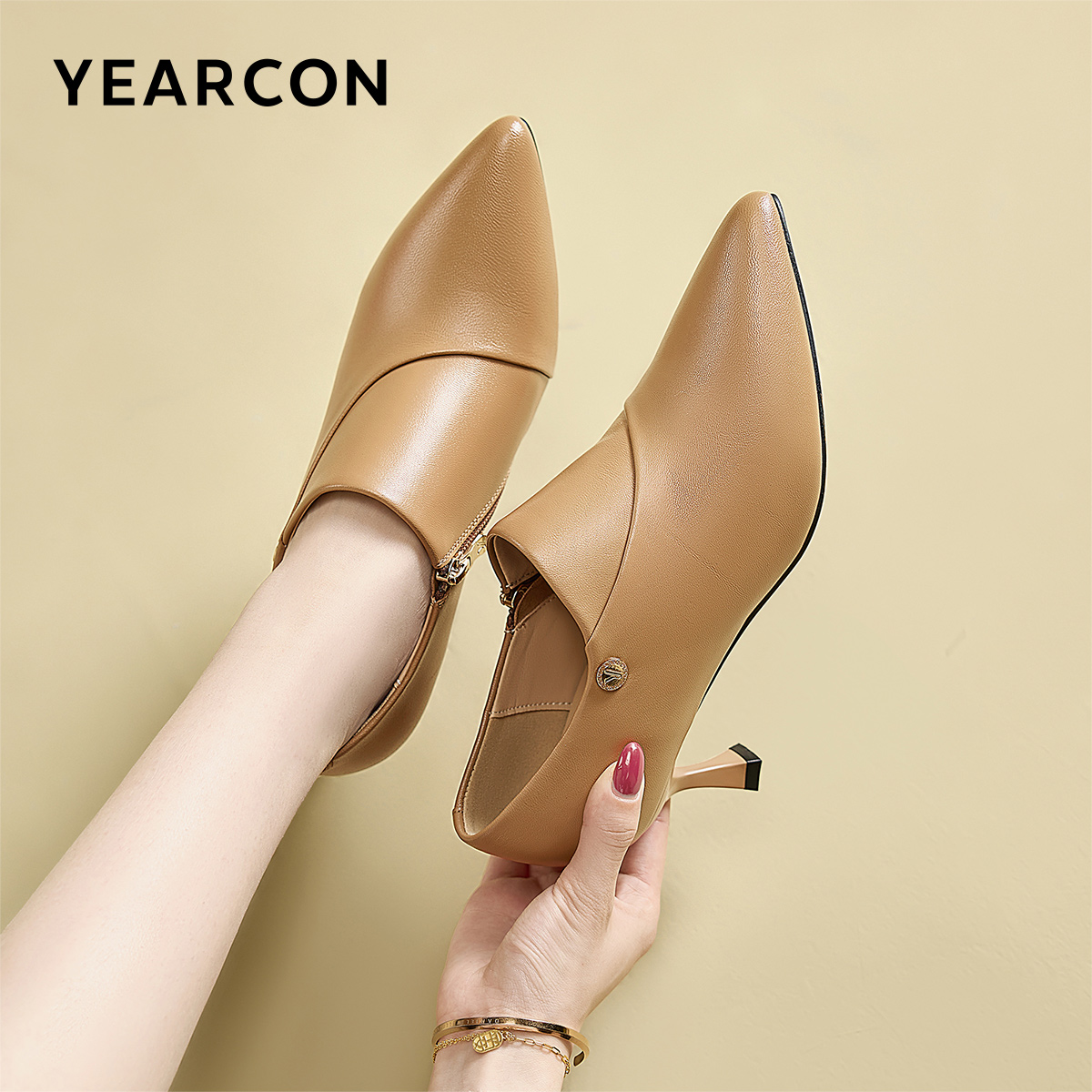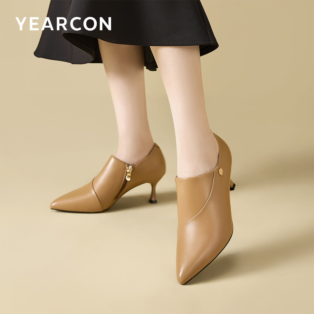尖头细跟皮鞋 羊皮深口真皮单鞋 女士高跟配裙子 2025秋季 意尔康女鞋