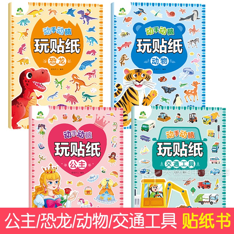 爱德少儿动手动脑玩贴纸书小公主去购物小恐龙打工记丢失 珍珠交通工具3到6岁贴贴画专注力儿童贴纸书全脑开发贴纸书益智潜能开发