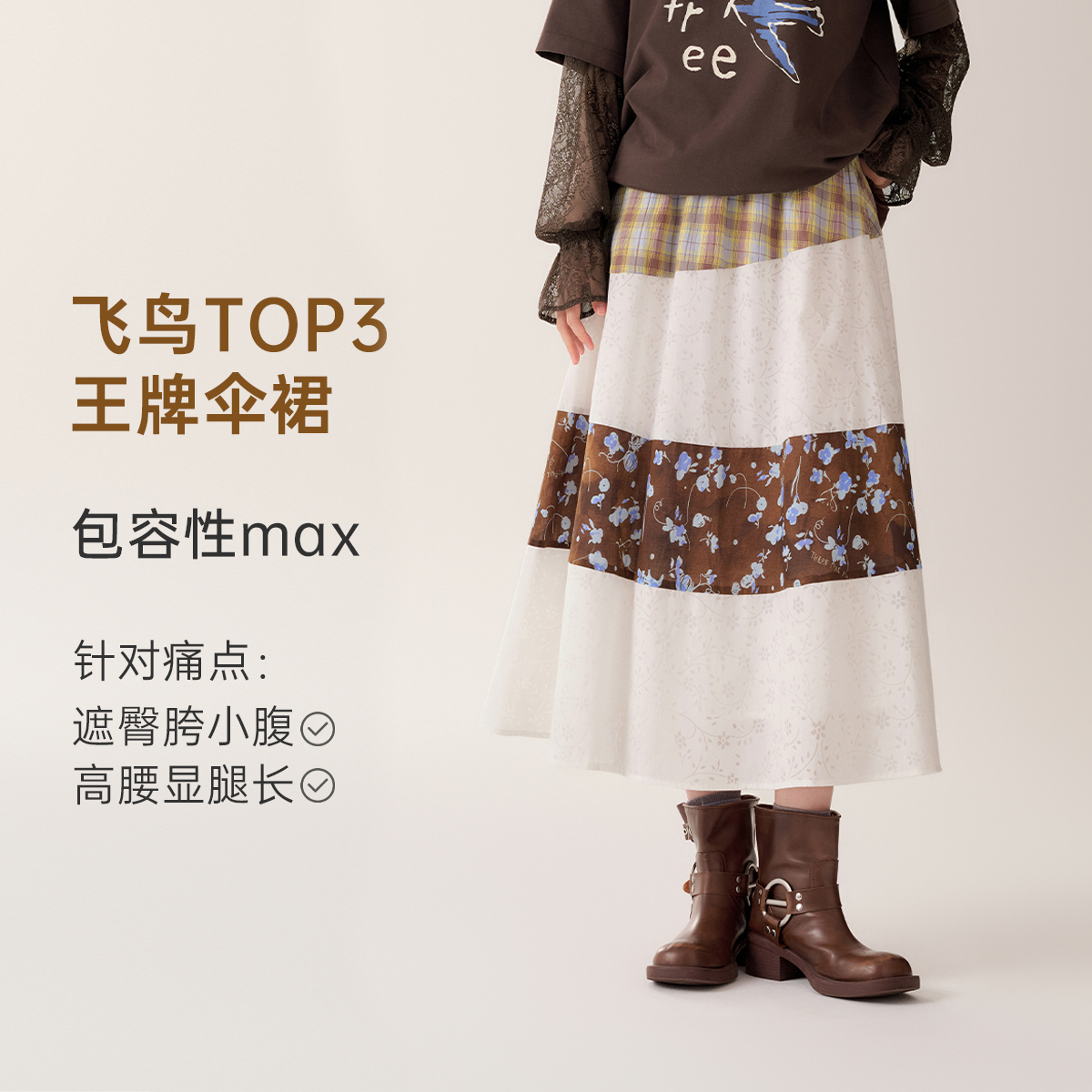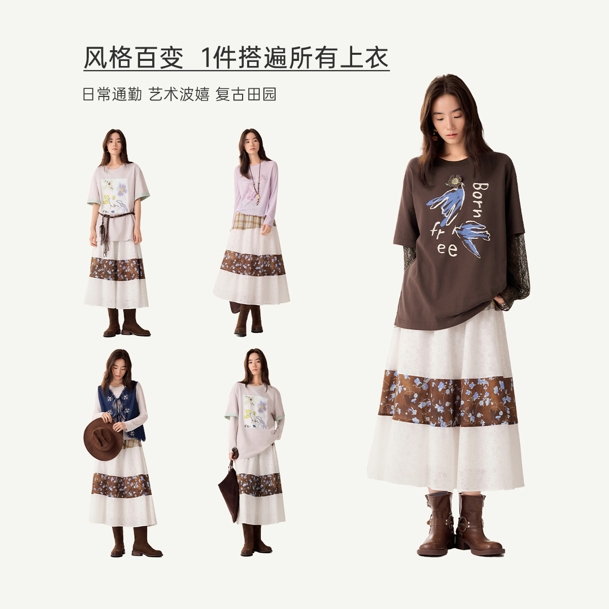 设计感波西米亚风裙 新款 飞鸟和新酒松紧腰半身裙中长款 2025秋季
