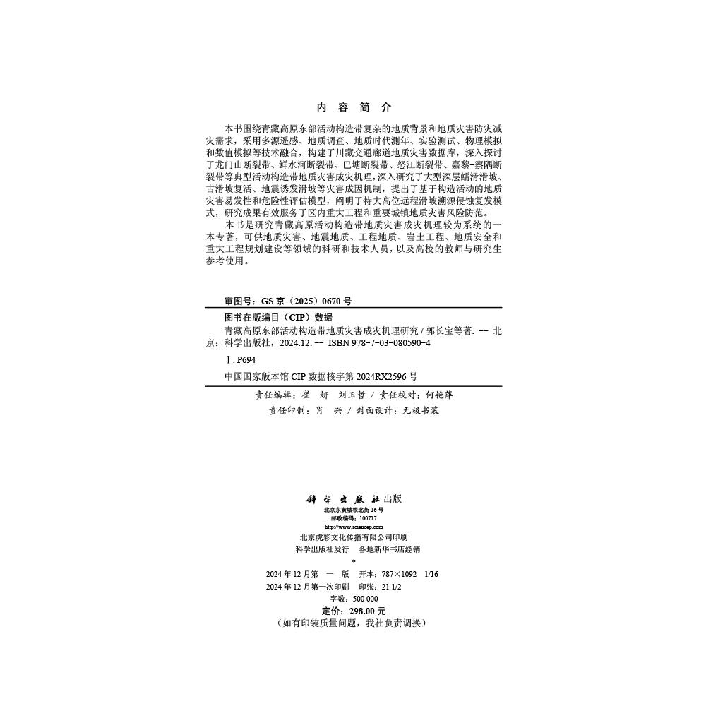 青藏高原东部活动构造带地质灾害成灾机理研究