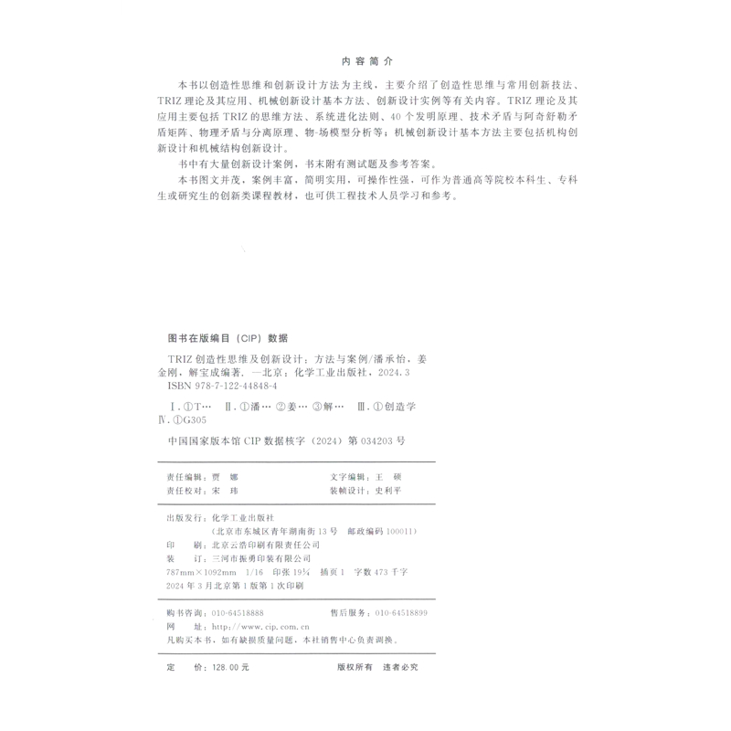 社新华书店正版 TRIZ创造性思维及创新设计——方法与案例潘承怡 编著工业技术其它化学工业出版 解宝成 姜金刚