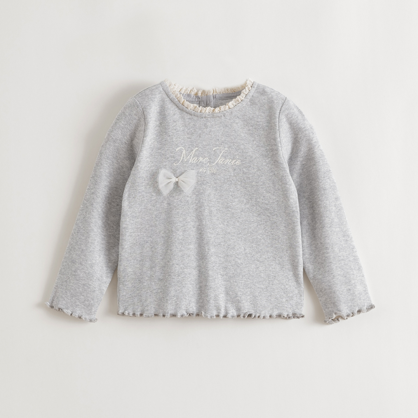 新款 宝宝上衣2025秋装 551211 T恤 马克珍妮女童网纱蝴蝶结花边长袖
