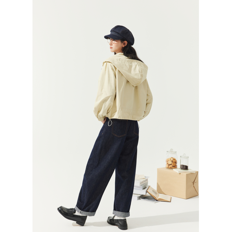 秋冬新款 开衫 修身 收腰上衣早秋穿搭美式 短款 灰色连帽卫衣外套女款