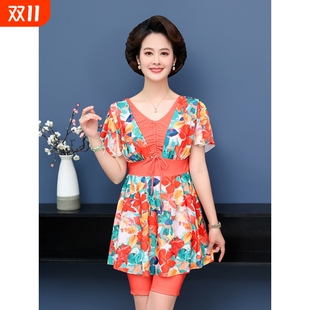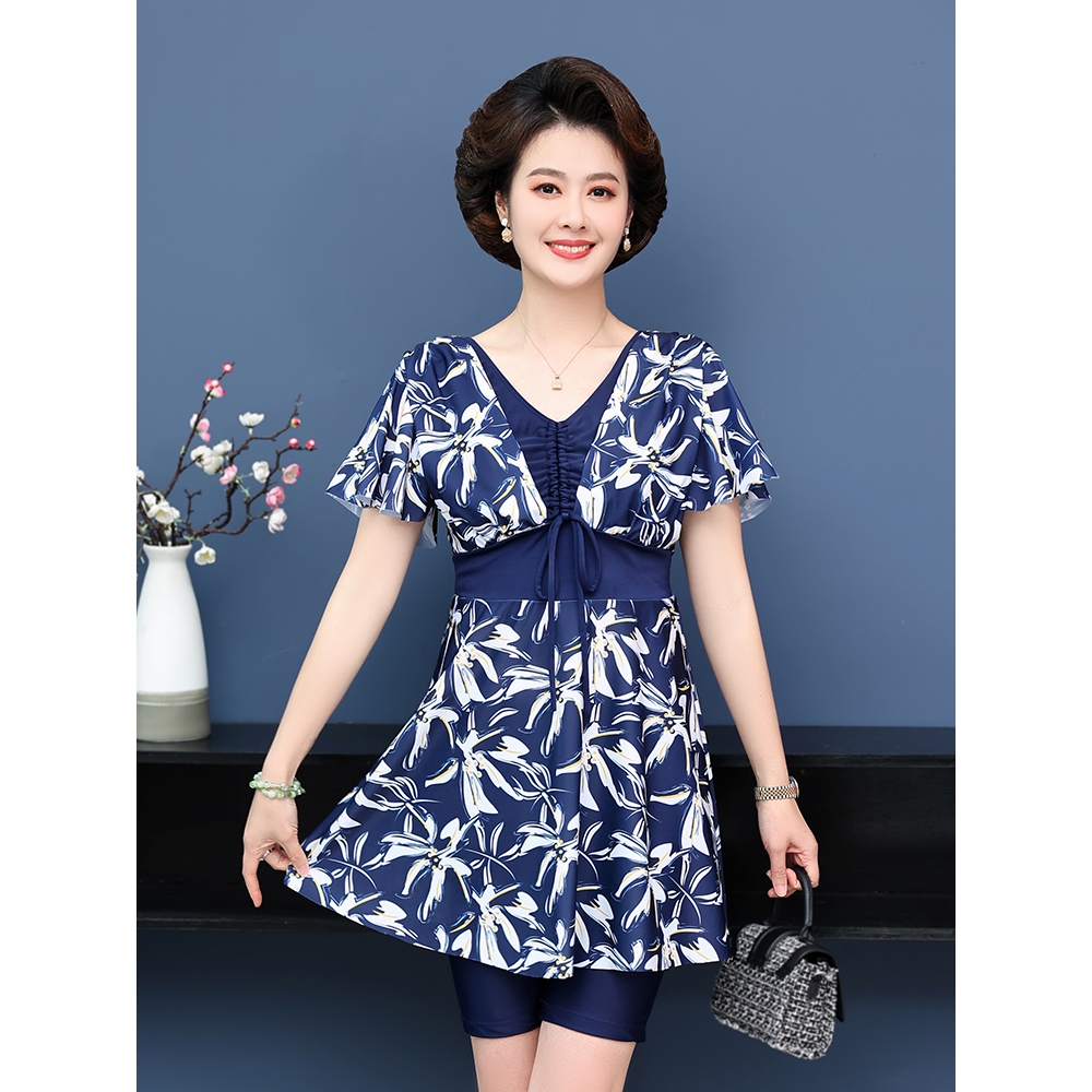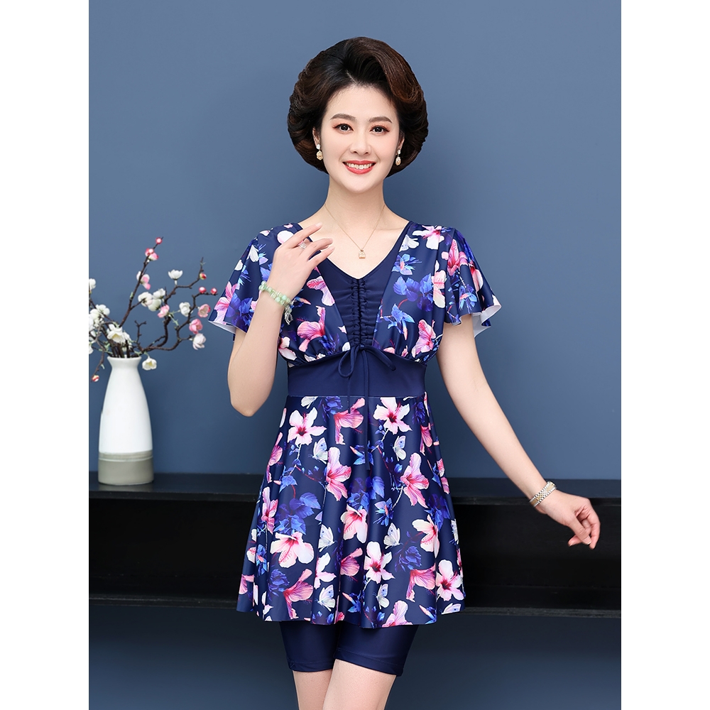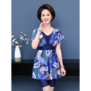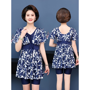 泡温泉显瘦游泳衣带胸垫 泳装 泳衣女妈妈款 中老年人分体保守大码