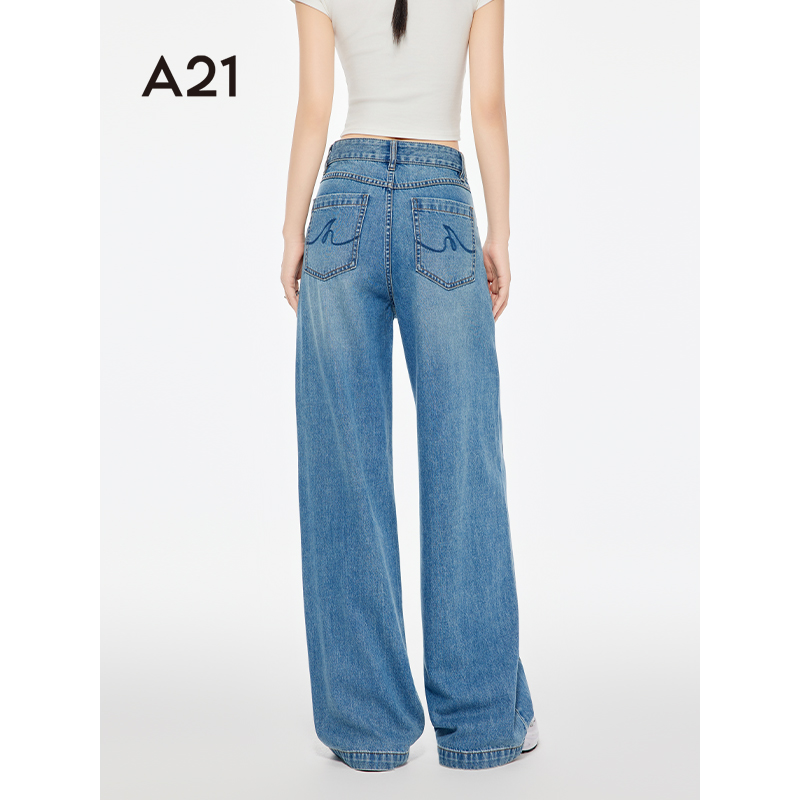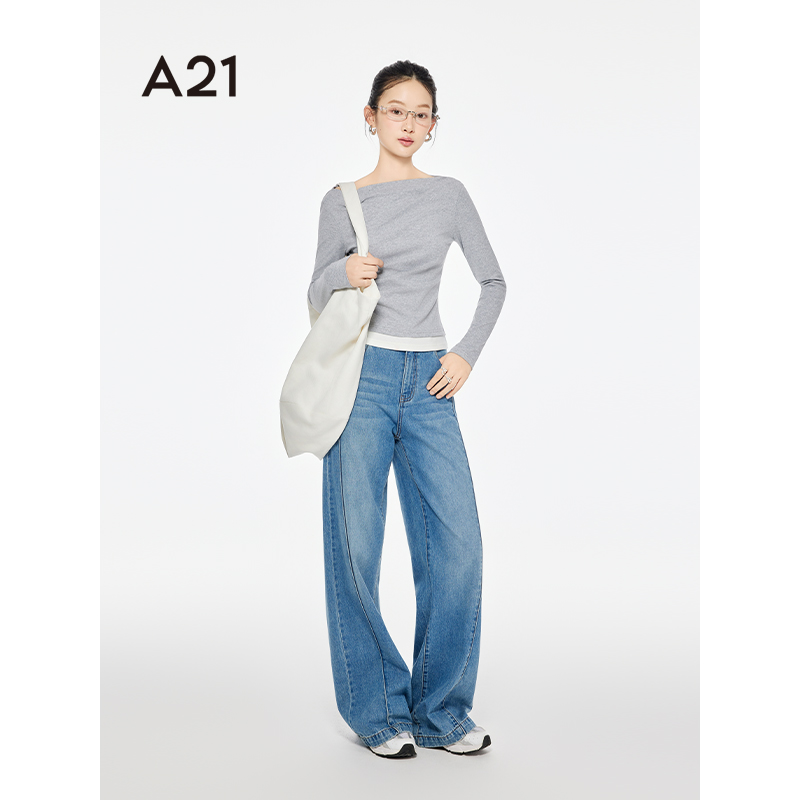 Moda牛仔裤 Vero 女25秋cleanfit高腰阔腿微喇叭四面弹 超模裤