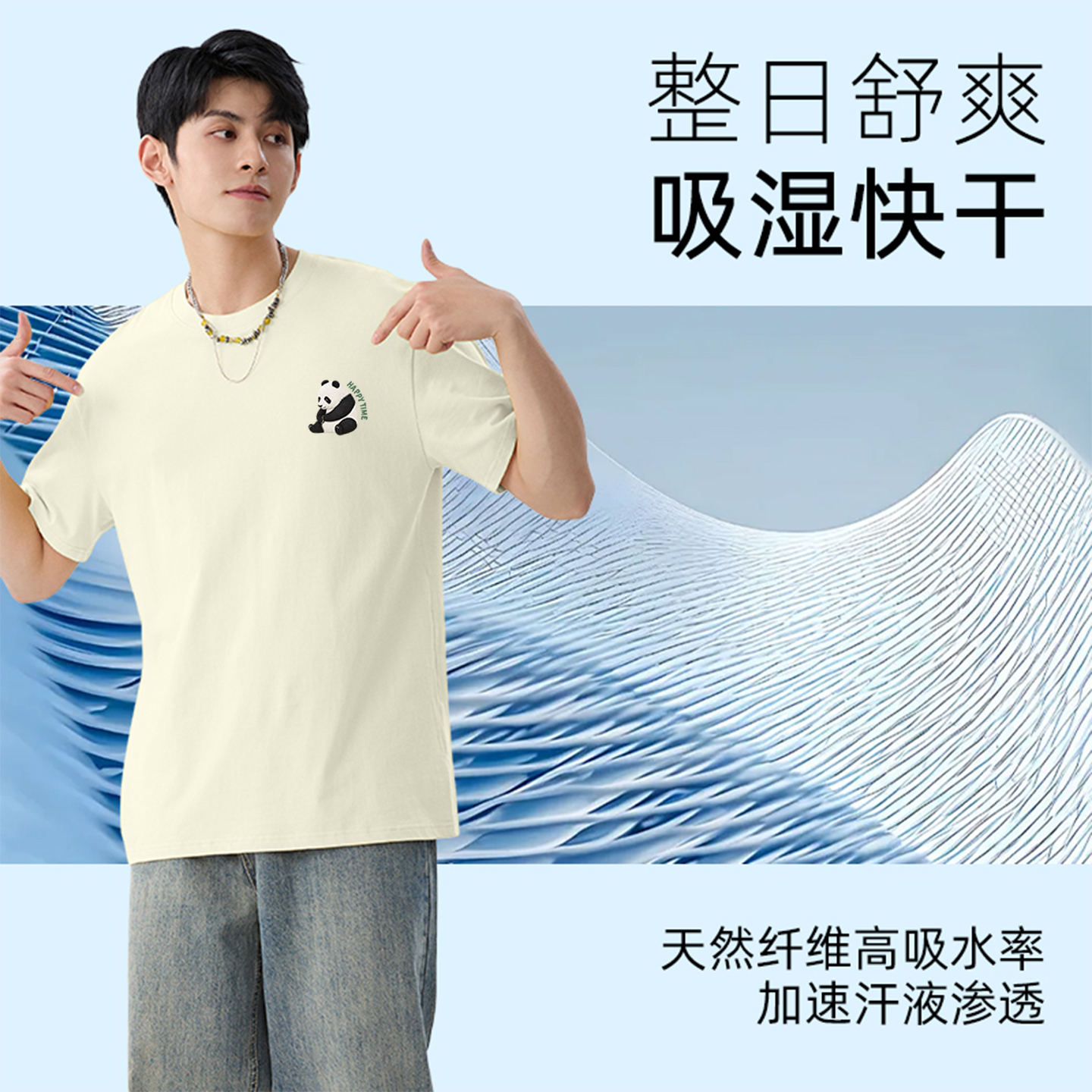 男款 抹茶绿国潮熊猫纯棉短袖 上衣 t恤男2025新款 班尼路S&K系列长袖