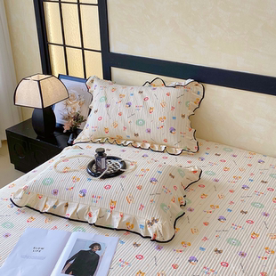 新款 74cm一对家用加厚冬单只枕芯套 ins云感双层纱夹棉花边枕套48