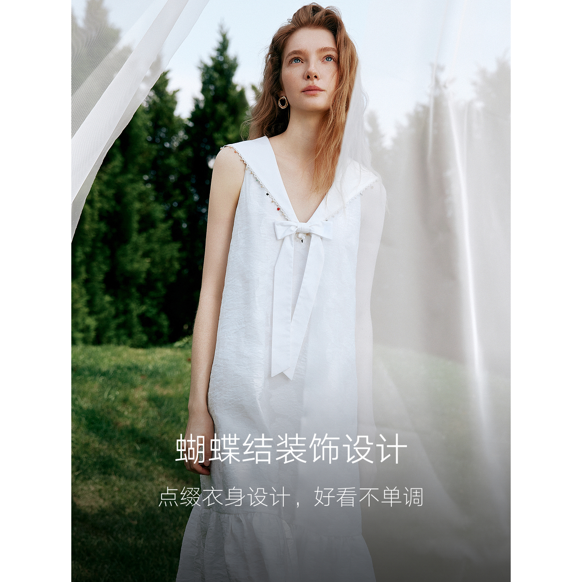 新款 ELLE拾贝少女海军领连衣裙女2025夏季 减龄小白裙 明星同款