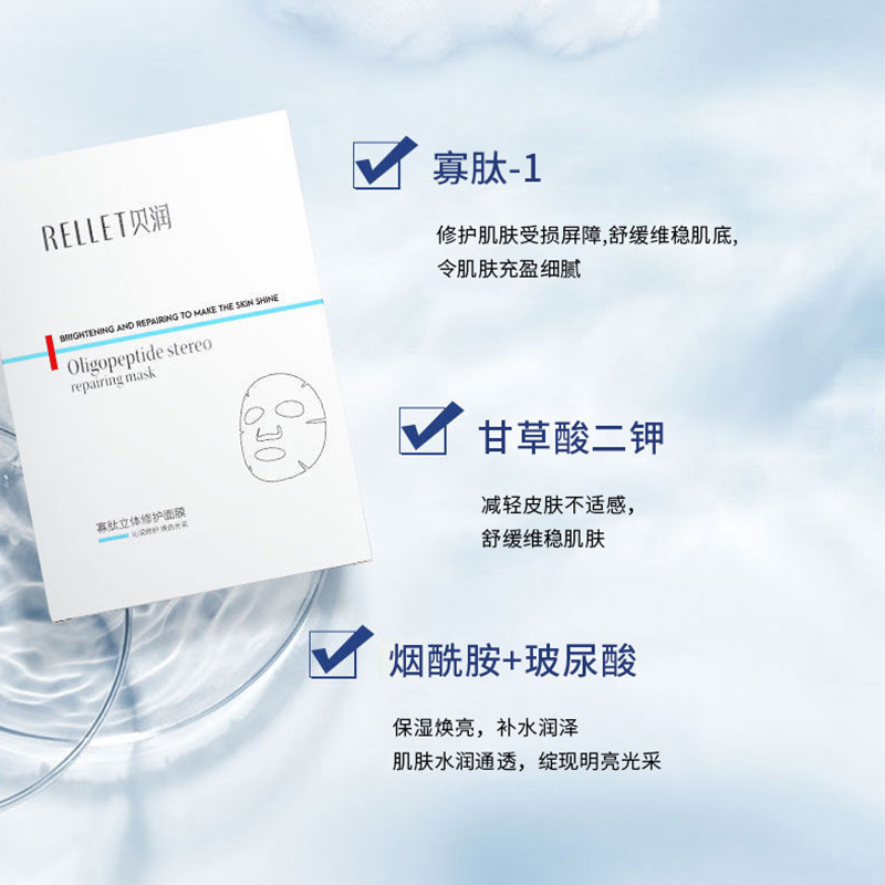 5片装 福瑞达贝润寡肽玻尿酸云雾面膜修护舒缓保湿 达人专属