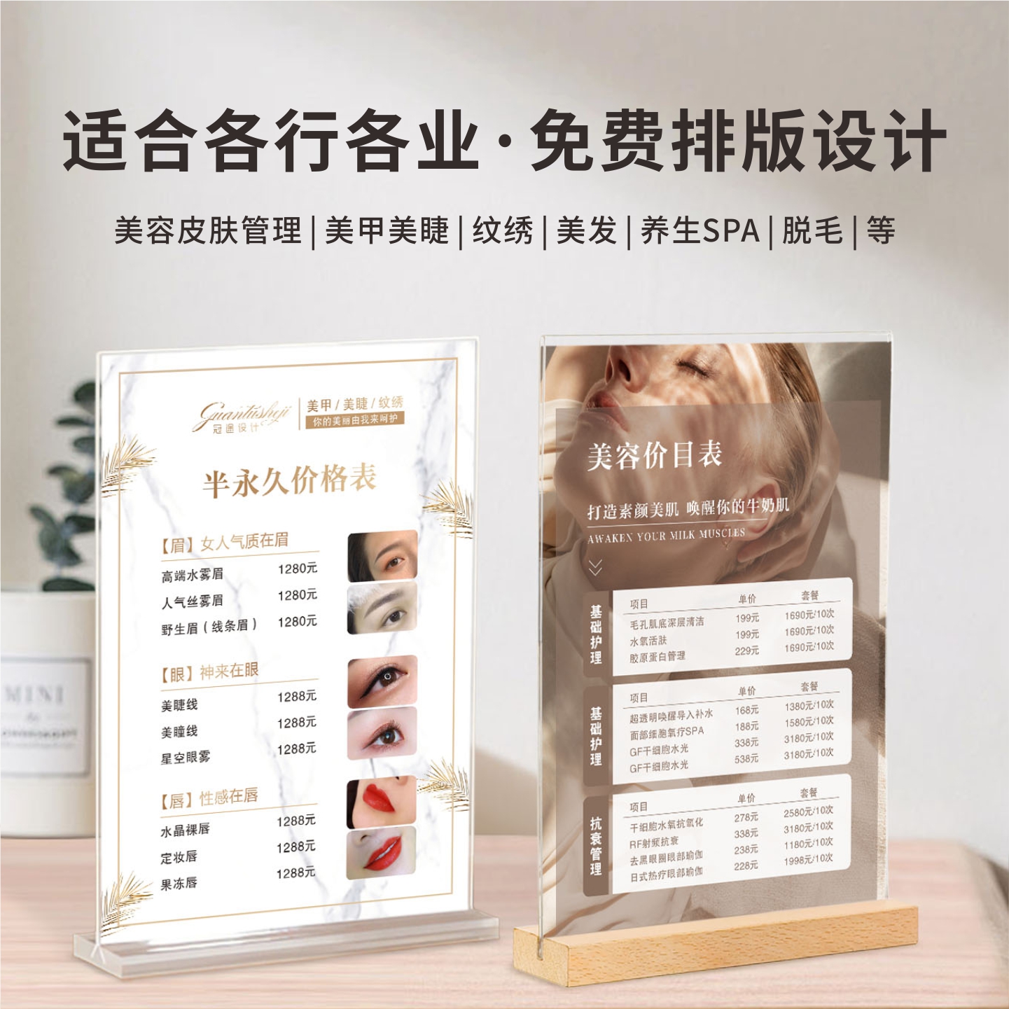 养生馆中医推拿理疗价目表定制spa按摩足疗价格表设计头疗采耳桌面摆台卡美容院美甲充值海报价格展示牌制作