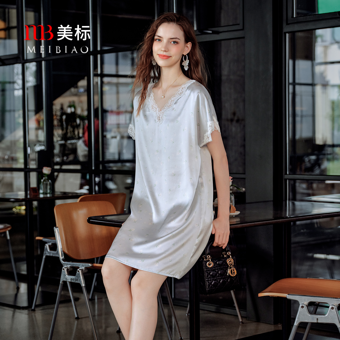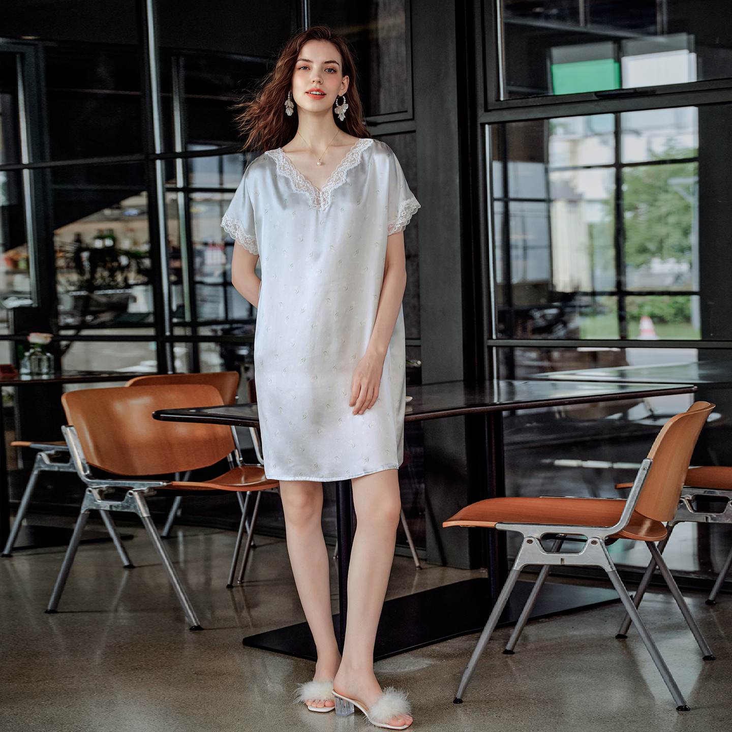 睡衣家居服女生夏天性感连衣裙 可爱短袖 芬腾睡裙女士夏季 纯棉薄款