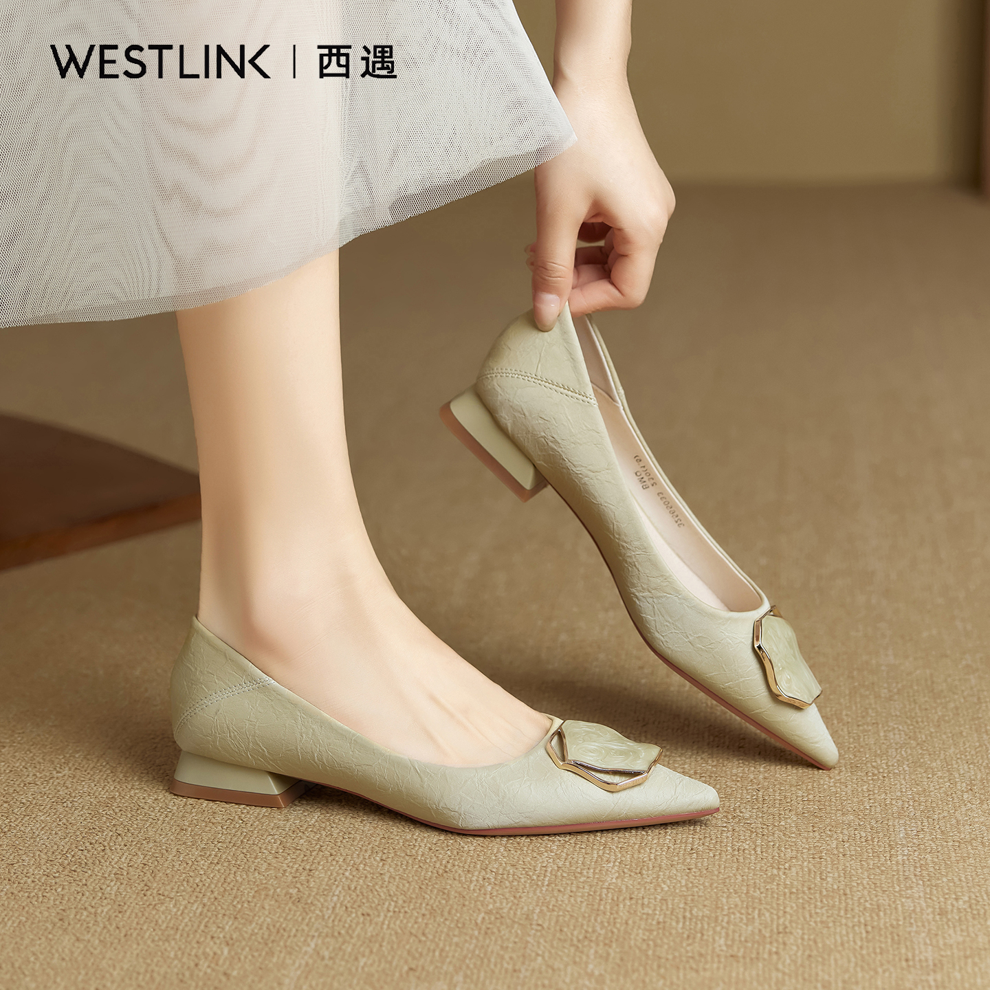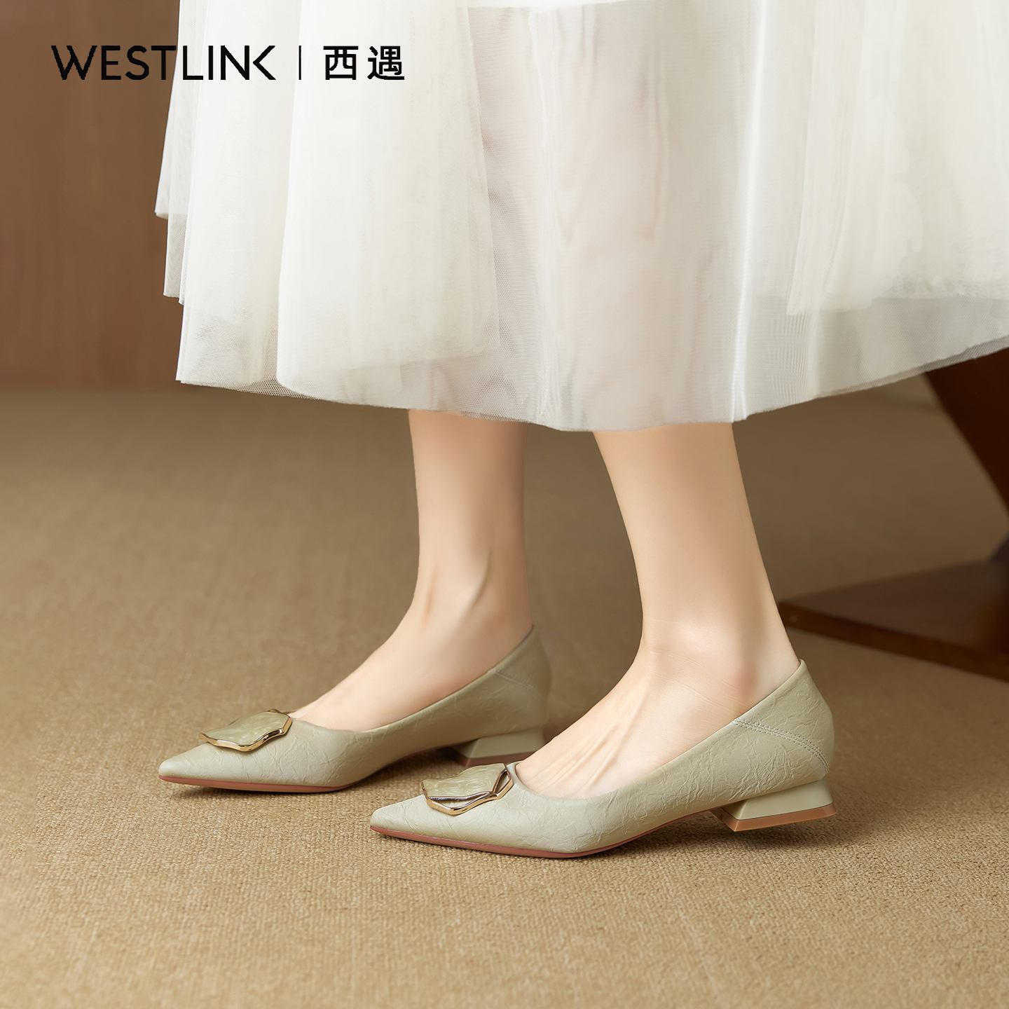 尖头缎面高级感配裙绝美低跟鞋 新款 女2025秋季 西遇方扣气质单鞋
