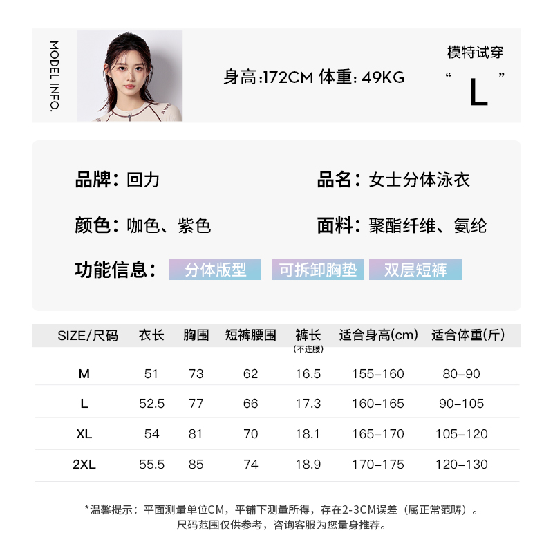 回力泳衣女保守分体2025新款 成人遮肉显瘦泡温泉高级感纯色游泳衣