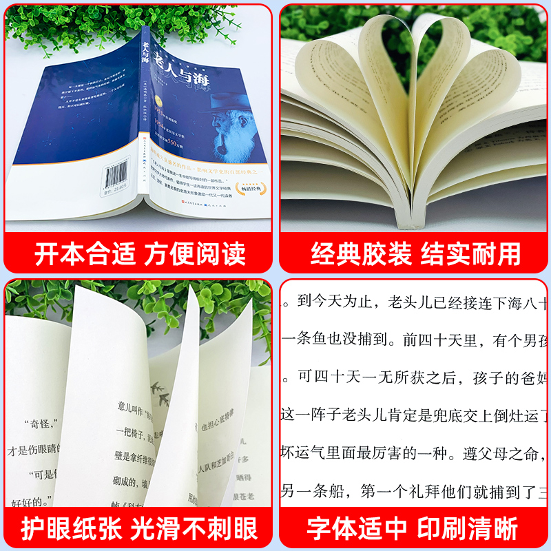 原著经典 海明威原版 世界文学名著小说五六年级小学生初中生高中生阅读课外书阅读书籍 人民文学出版 完整无删减老人与海正版