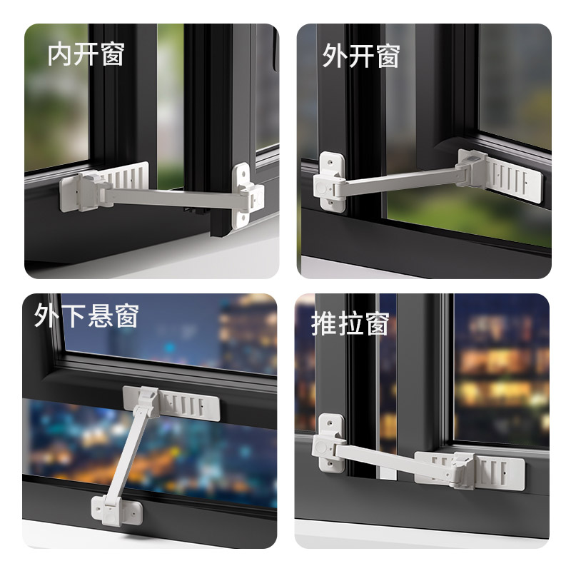 铝合金窗户限位器防开锁扣儿童安全锁免打孔固定防盗推拉平开卡扣