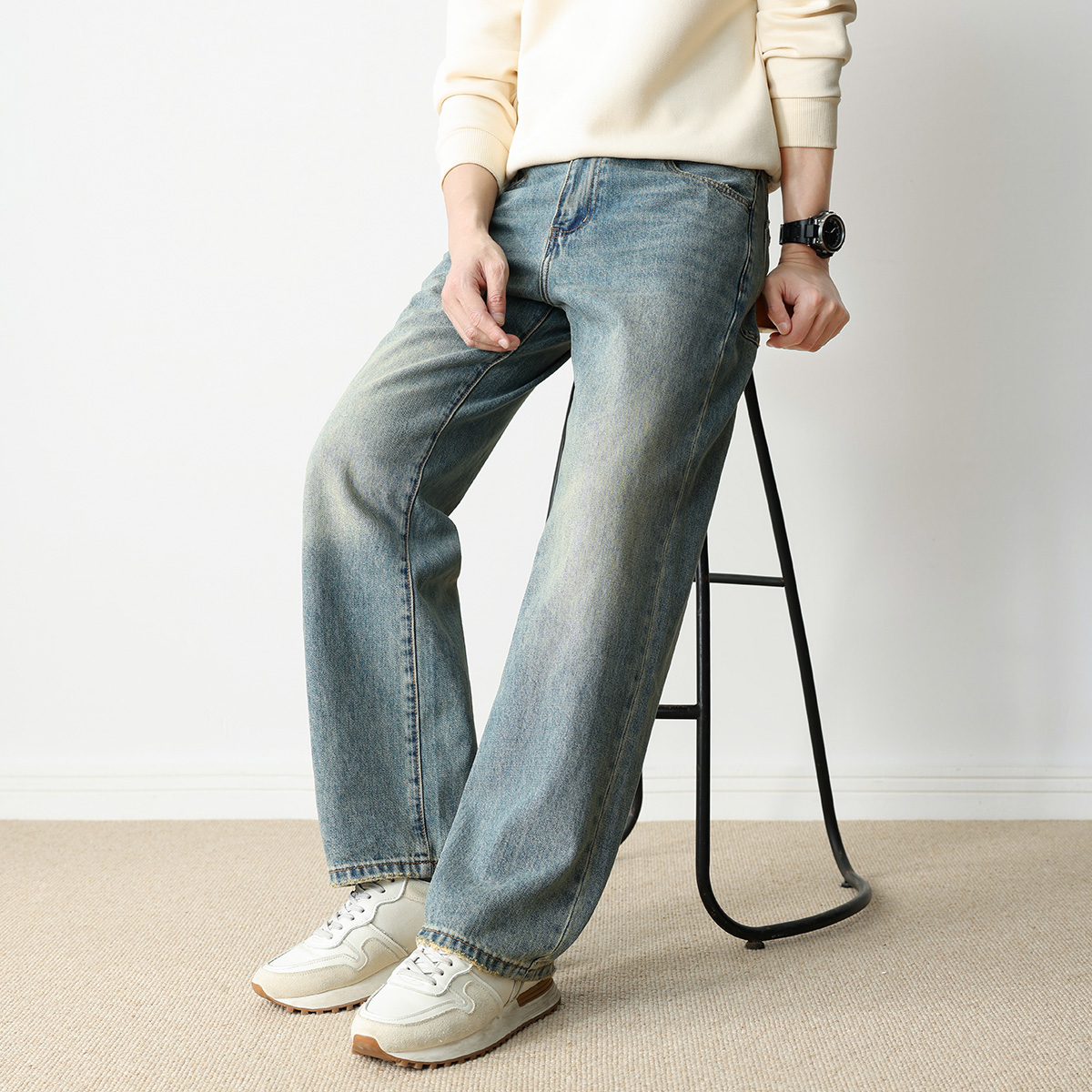 阔腿垂坠感长裤 hansca418g直筒牛仔裤 重磅宽松大码 2025秋季 子 男款