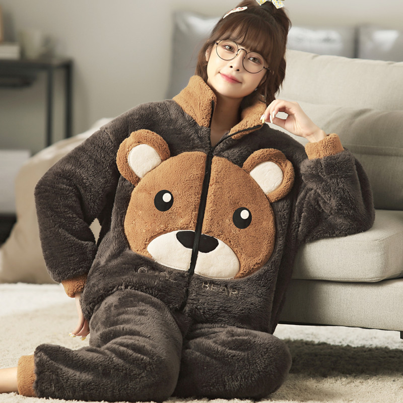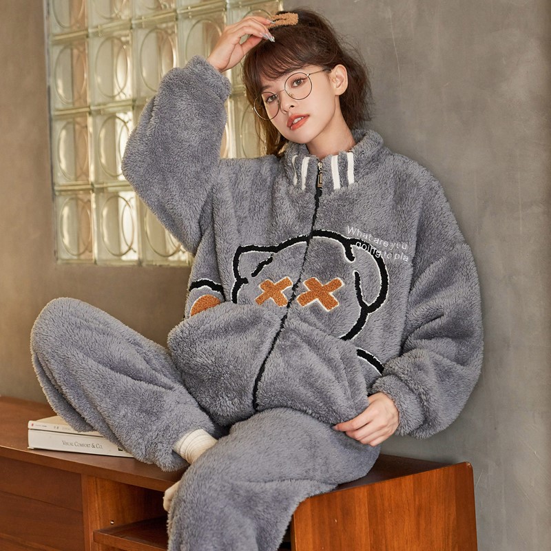 套装 女加厚保暖秋冬法兰绒家居服加肥加大码 珊瑚绒睡衣妈妈款 冬季