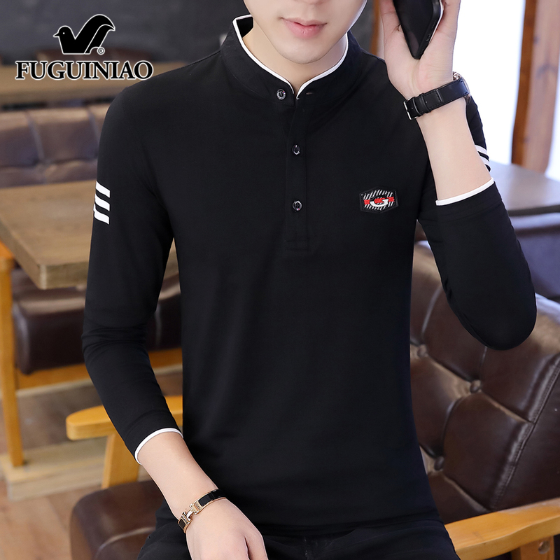 t恤男士 休闲卫衣男装 2025年秋季 立领打底polo衫 潮 新款 富贵鸟长袖