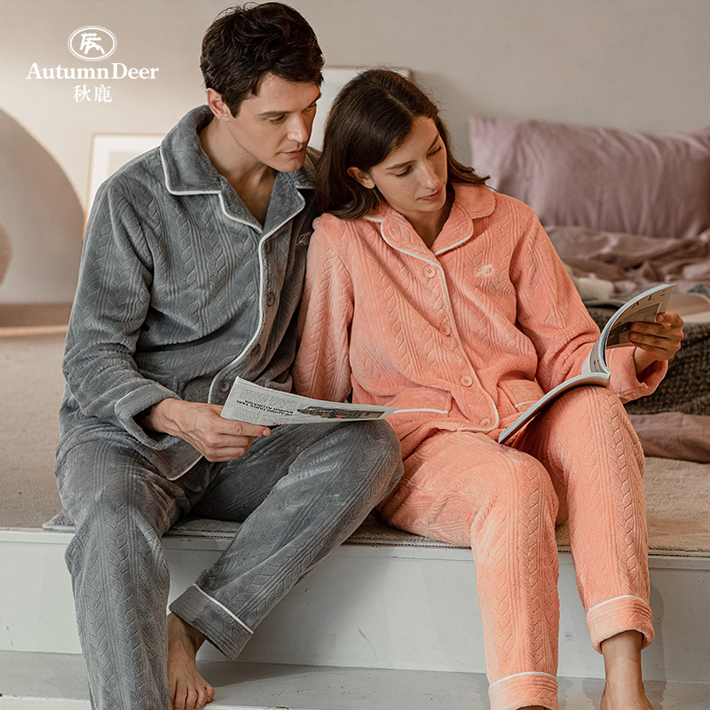 秋鹿 秋冬男女睡衣加厚法兰绒休闲情侣珊瑚绒家居服暖绒 高级感