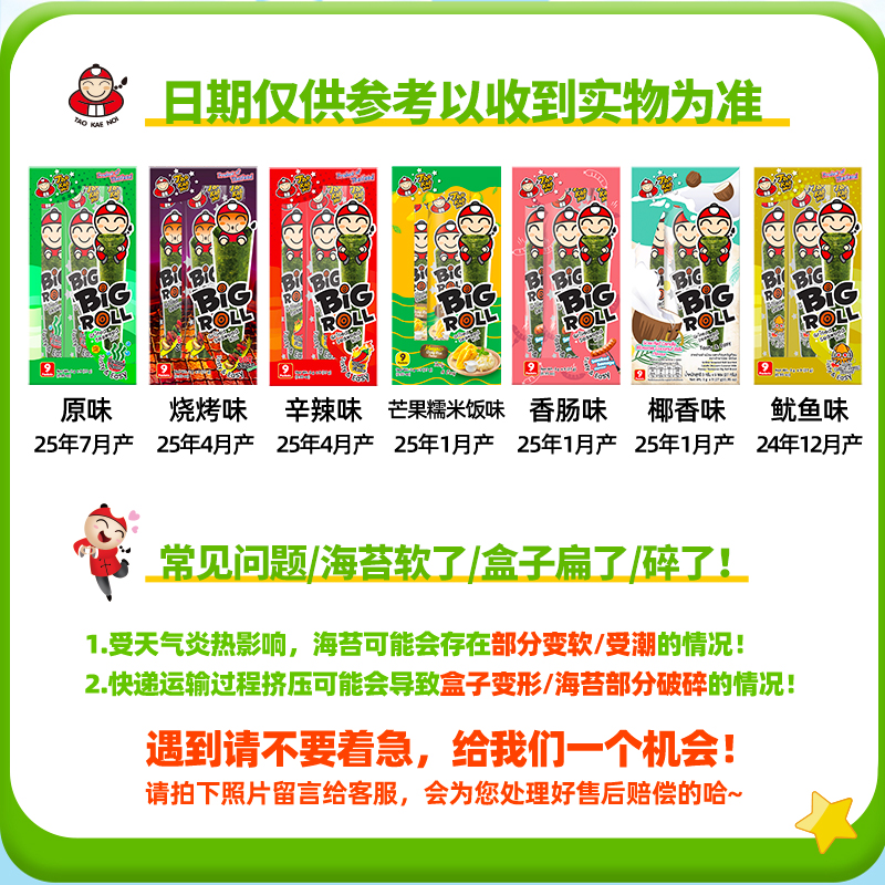 泰国进口零食老板仔脆紫菜儿童即食烤炸海苔系列海苔片27g 2盒