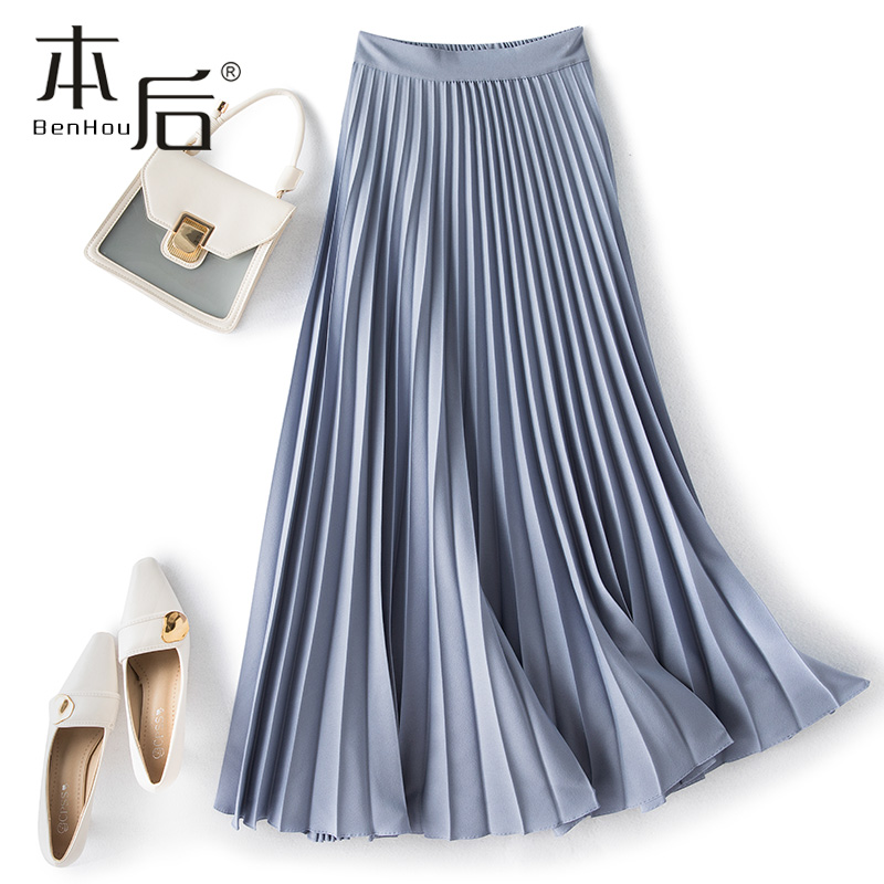 裙垂感新款 高腰显瘦西装 a字裙子长裙 百褶半身裙春秋女中长款 1929