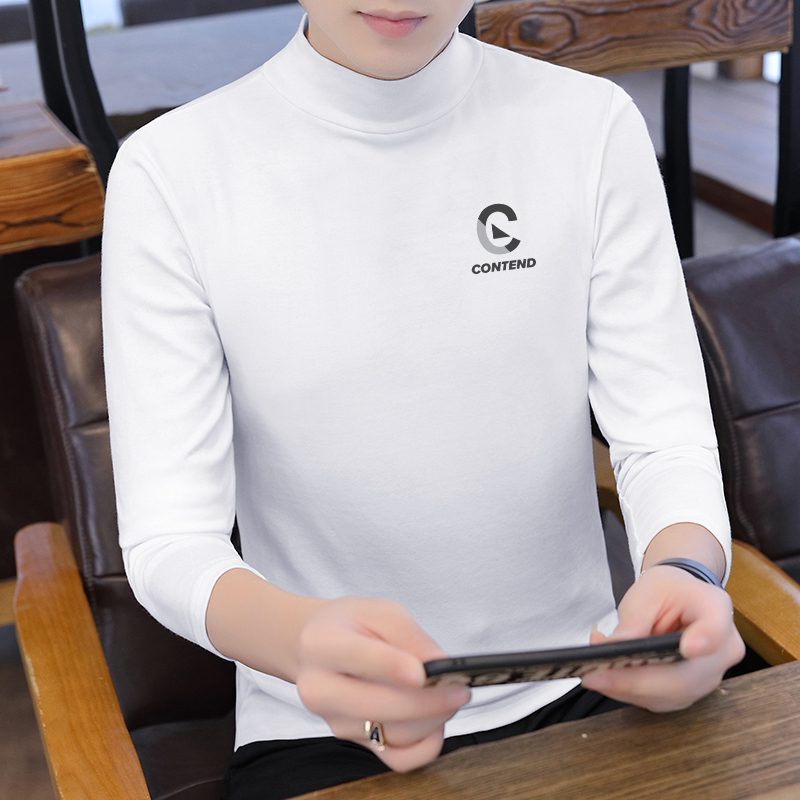 休闲黑色小衫 纯棉秋装 上衣服内搭打底衫 t恤男士 潮流INS 半高领长袖