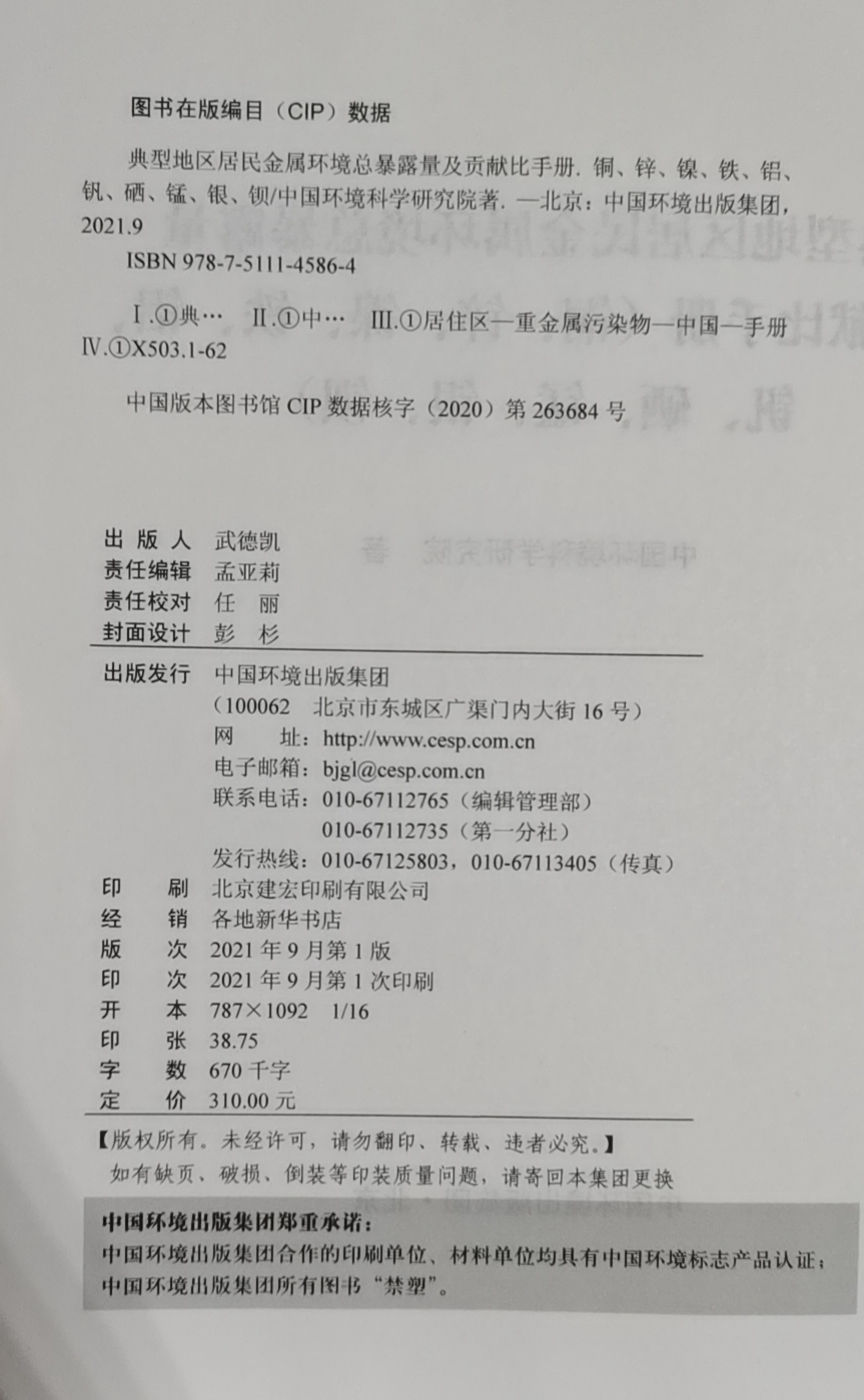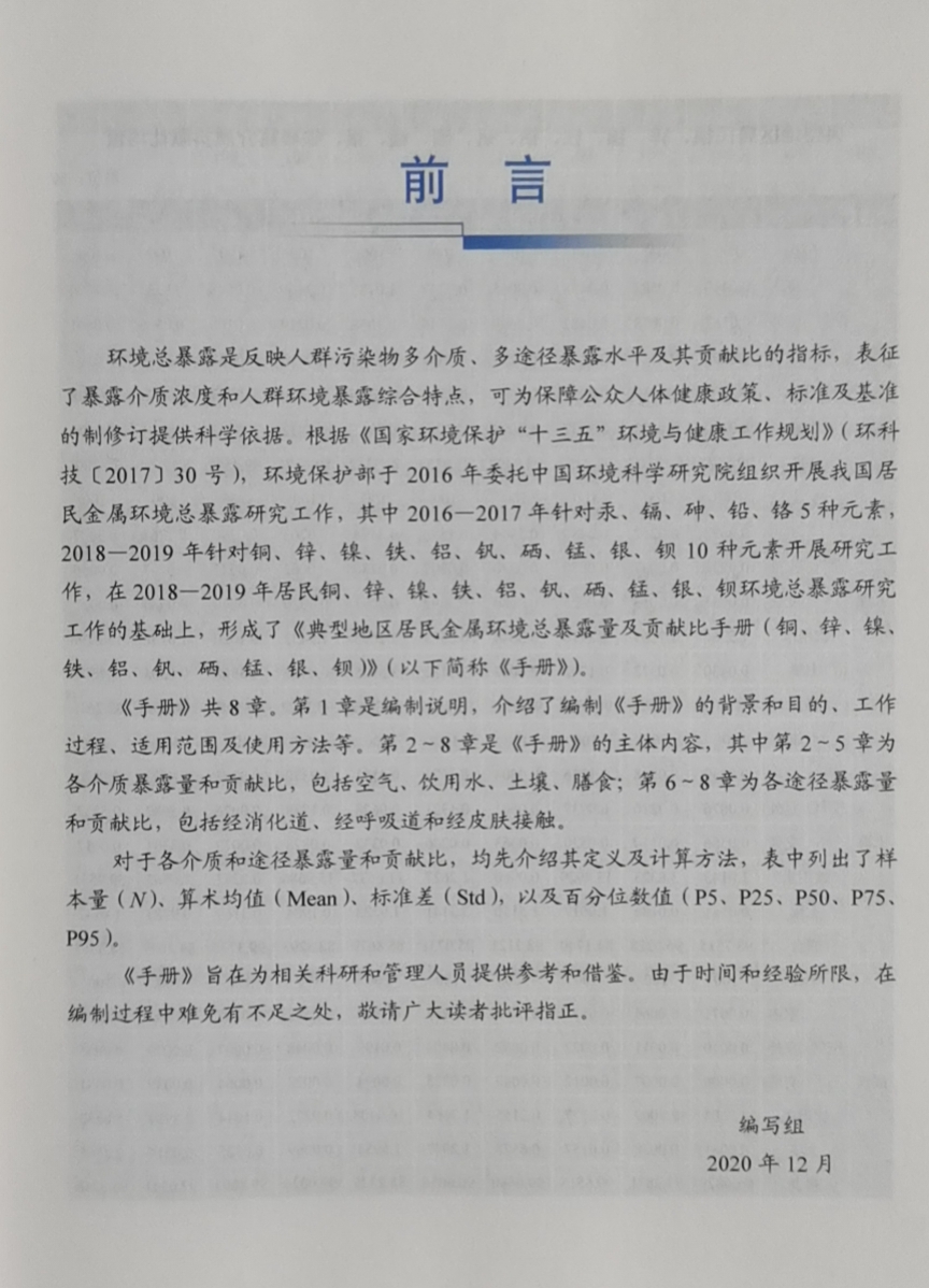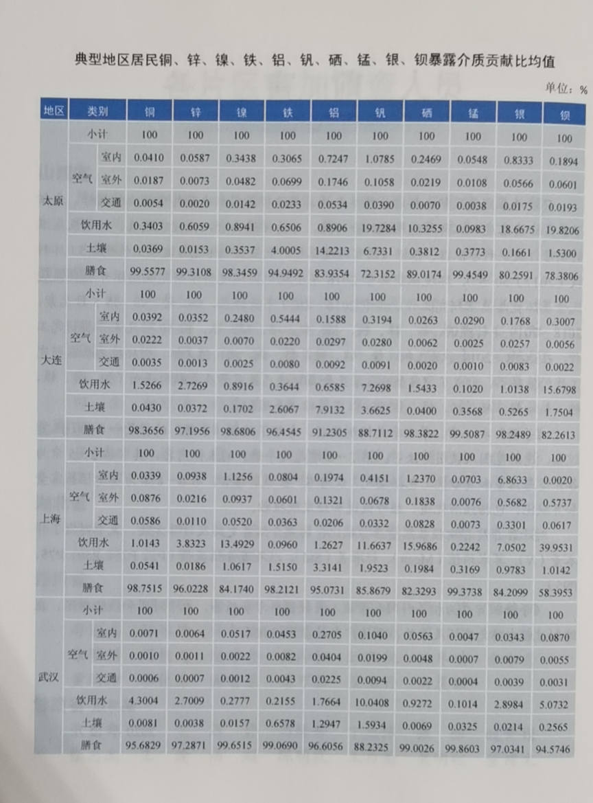 铁 铝 银 锌 钡 锰 镍 硒 典型地区居民金属环境总暴露量及贡献比手册.铜 钒