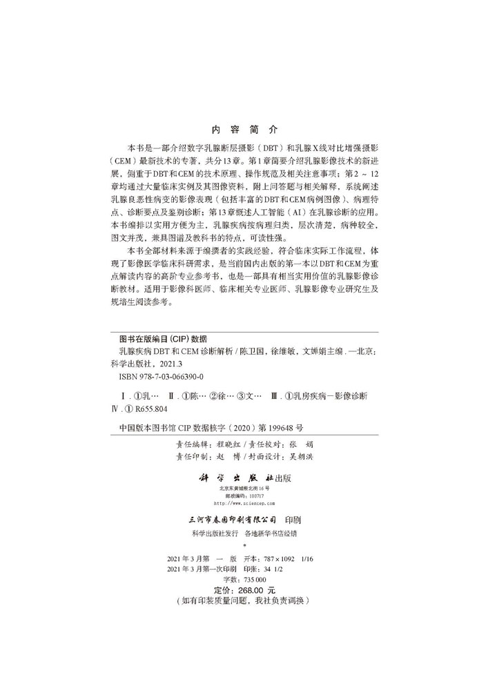 文婵娟 徐维敏 乳腺疾病DBT和CEM诊断解析 陈卫国