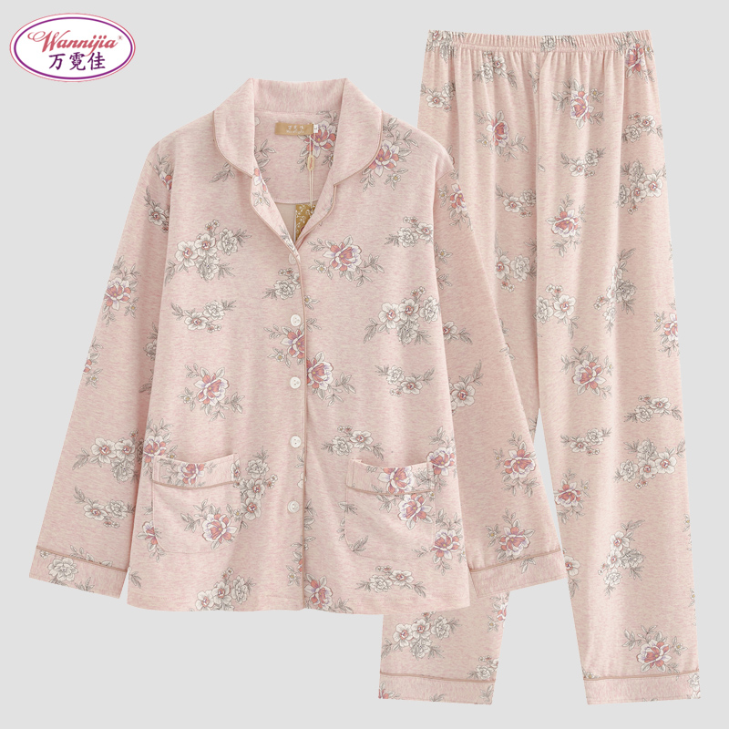 纯棉磨毛女士睡衣秋季 加肥加大中老年妈妈家居服 抓绒加厚花卉套装