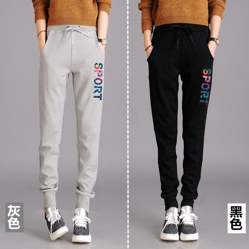运动裤 纯棉休闲裤 女长裤 收口小脚裤 加绒高腰宽松束脚卫裤 春秋冬季