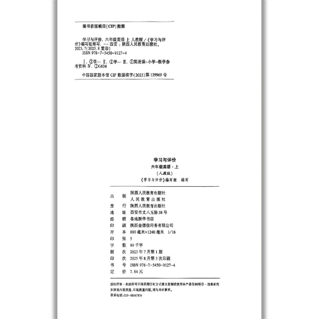 配套人教版 六年级上册英语学习与评价A版 PEP 陕西人民教育出版 小学生六年级上册英语课本同步练习册训练题 2025新版 社 小学6