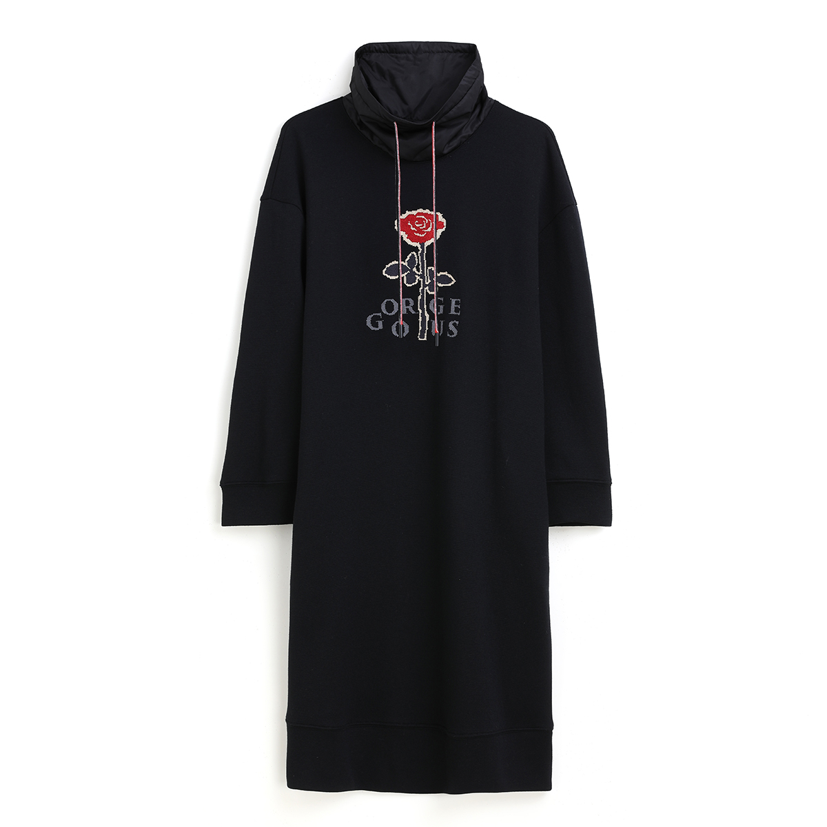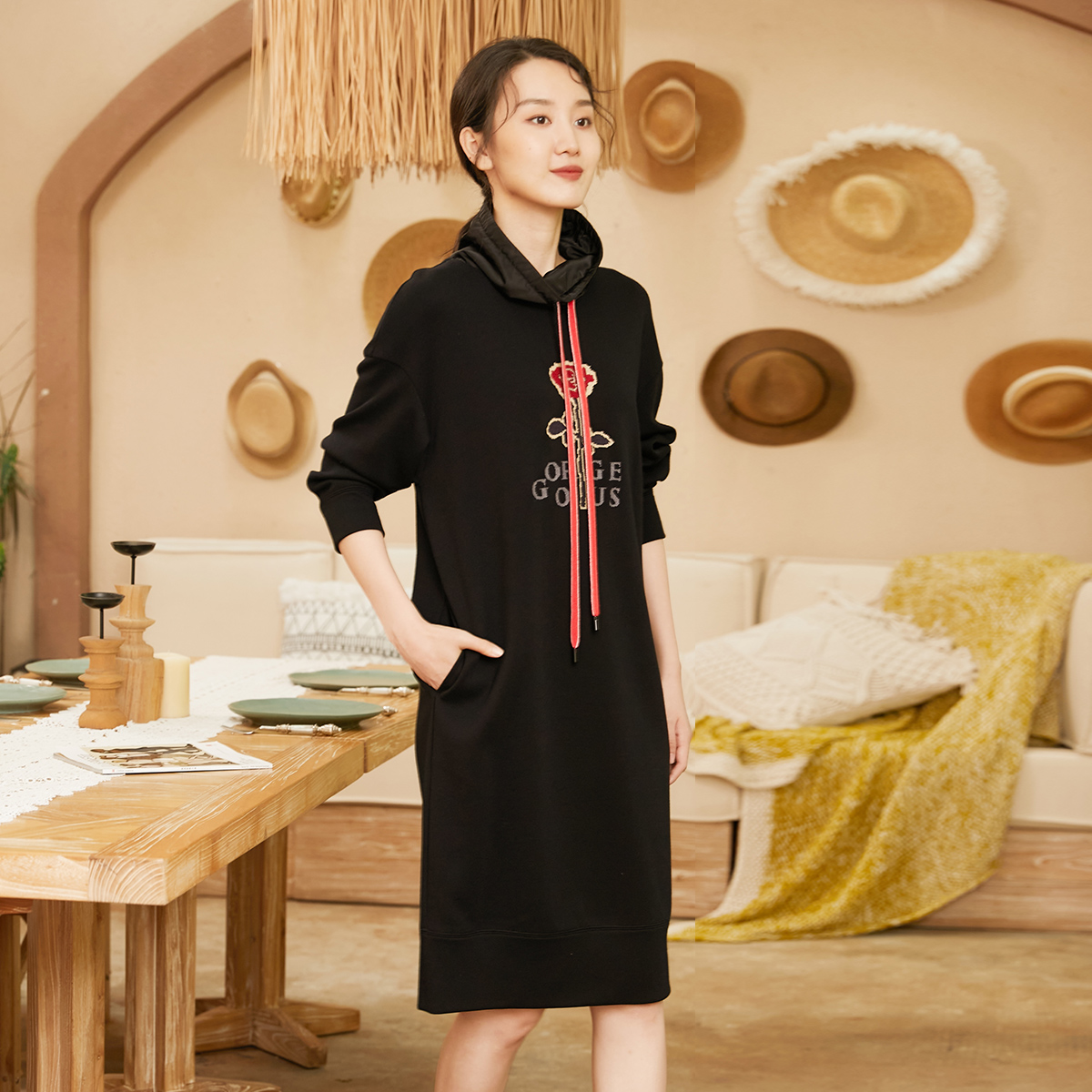 歌莉娅丝绒连衣裙女秋冬厅里厅气连身裙正式 场合小黑裙1BNR4K360