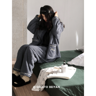 套装 贝妍睡衣女秋冬季 少女学生保暖家居服大码 开衫 加厚珊瑚绒时尚