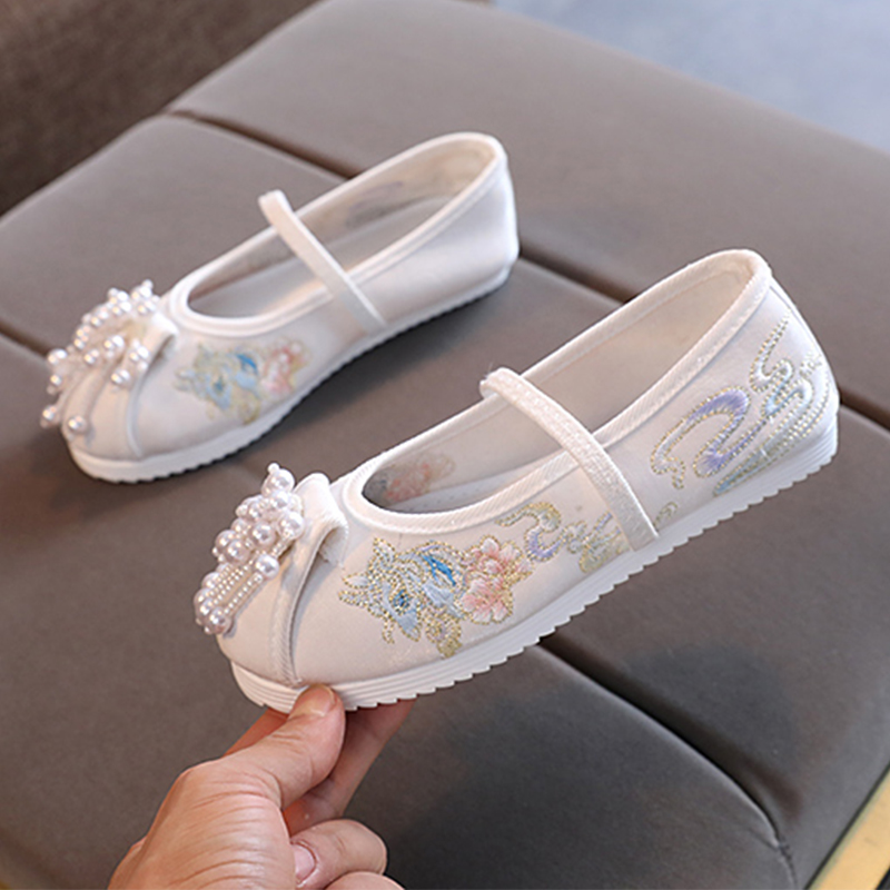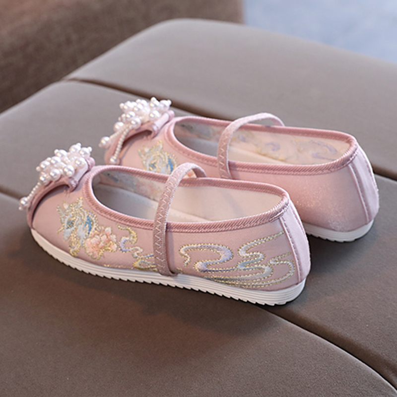 中大童鞋 独角兽新款 古风流苏绣花鞋 儿童复古老北京布鞋 女童汉服鞋