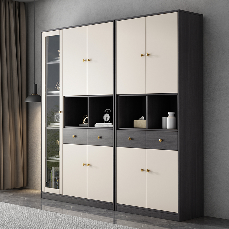 实木书柜家用客厅展示柜可定制柜子中古风带玻璃门单个书柜储物柜