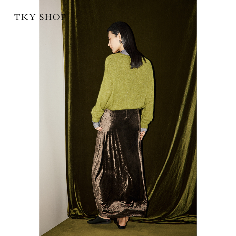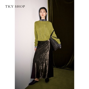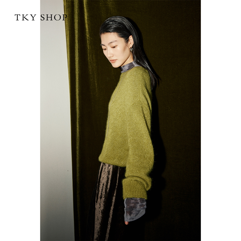 新款 女2025冬季 简约纯色百搭气质毛衣 SHOP马海毛圆领针织衫 TKY