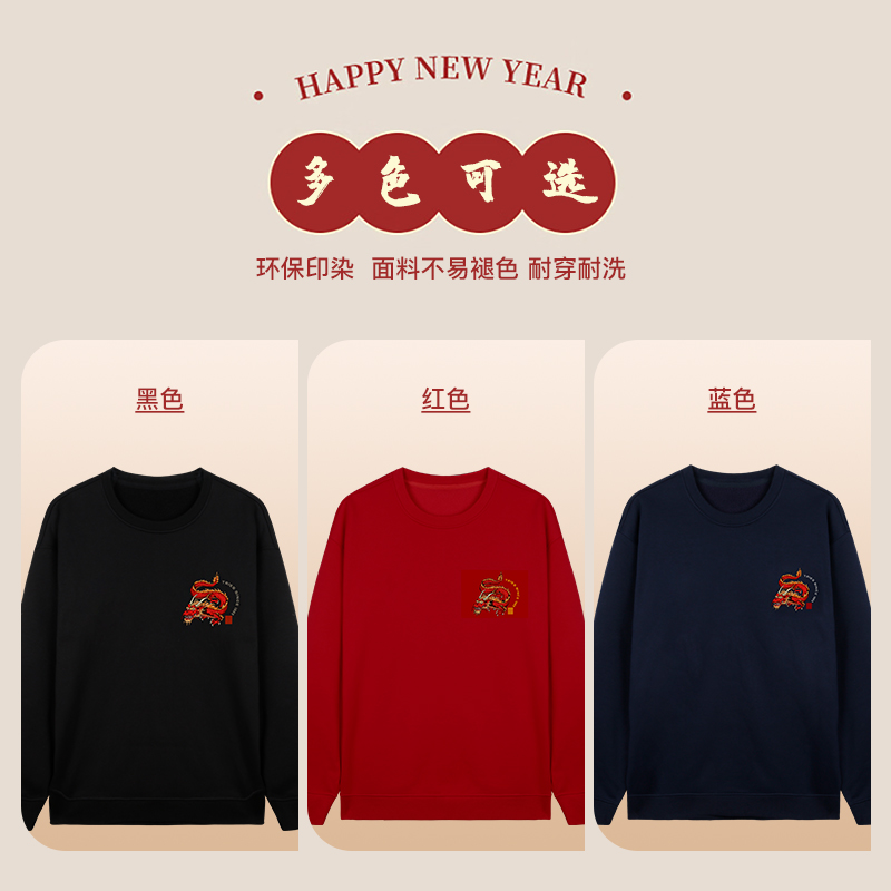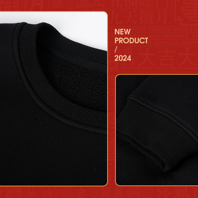 加绒加厚中国风圆领套头休闲上衣 2025秋冬季 才子男装 红色卫衣男士