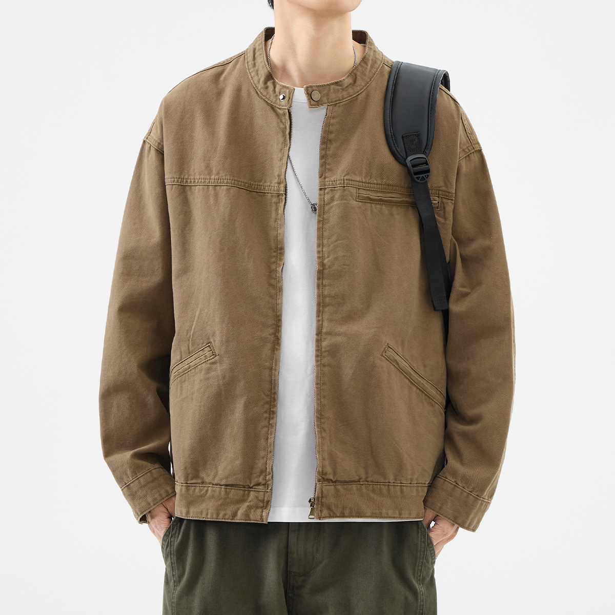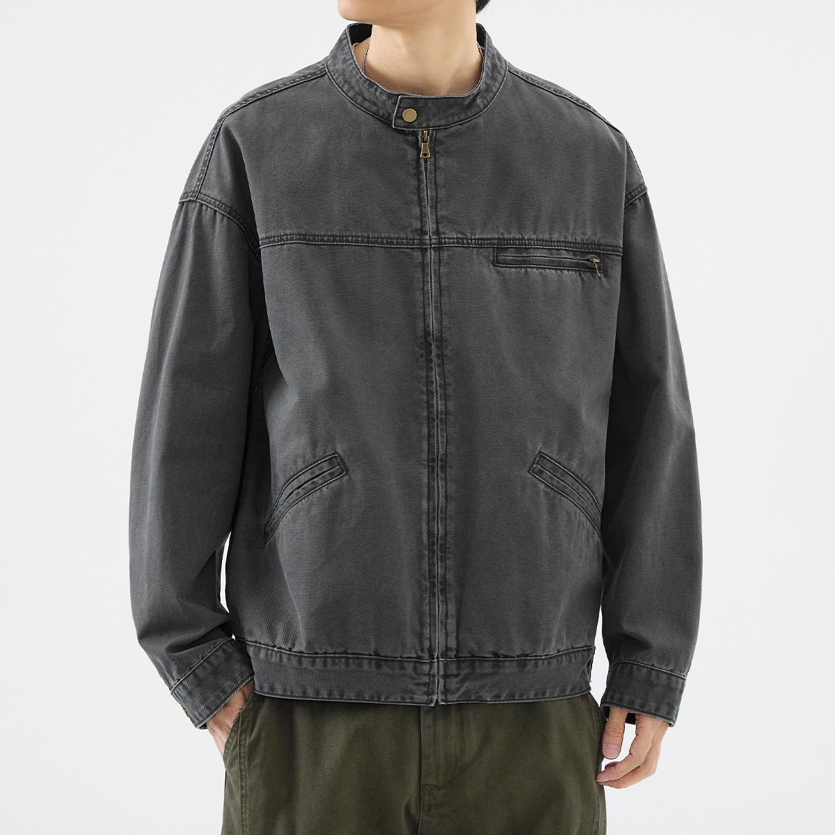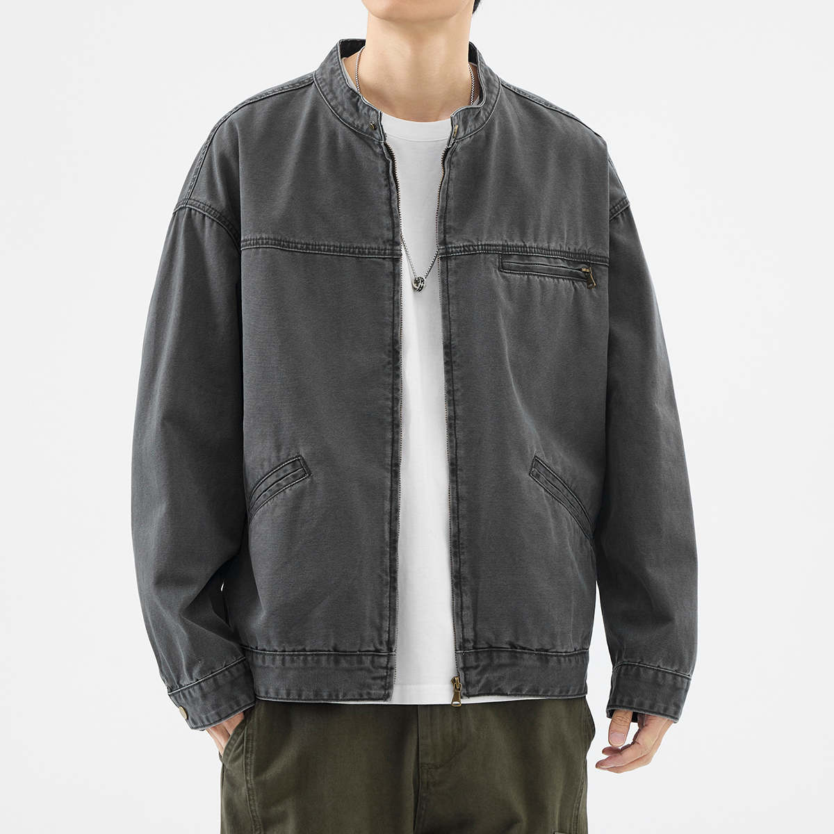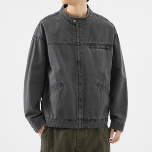 牛仔衣 工装 高级感防褪色原色水洗牛仔外套男宽松大码 翻领夹克新款